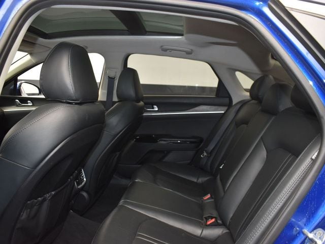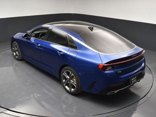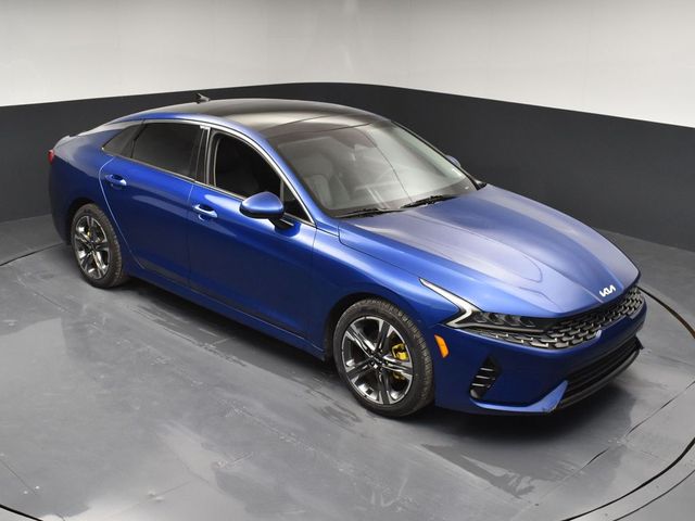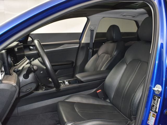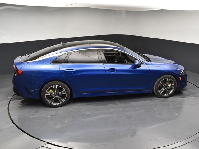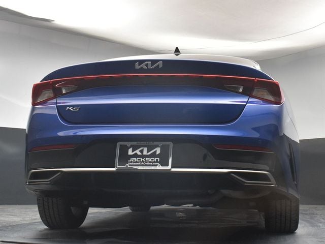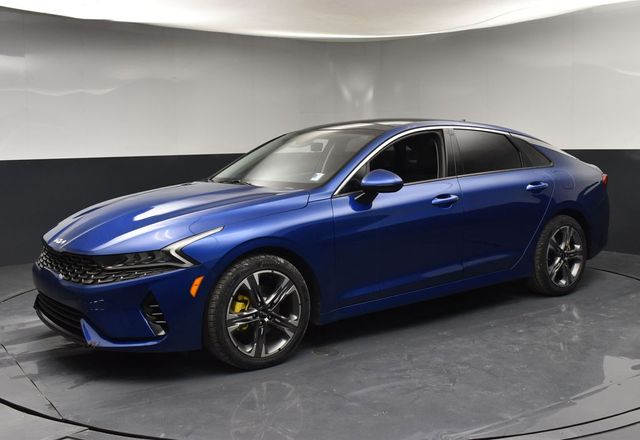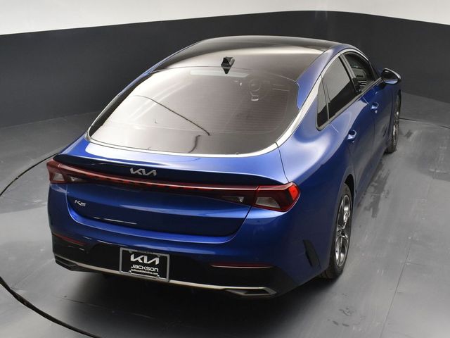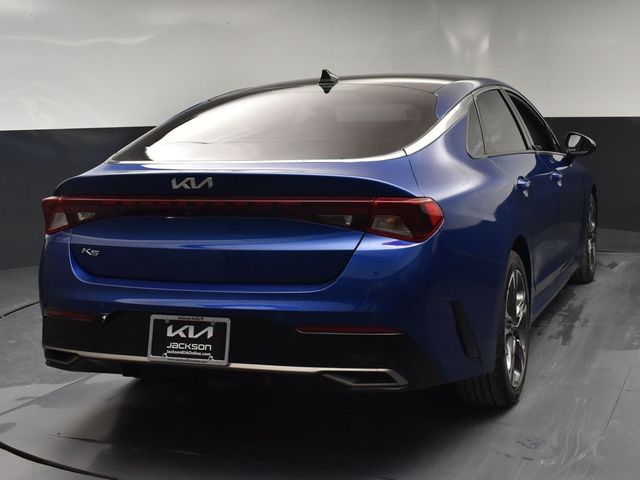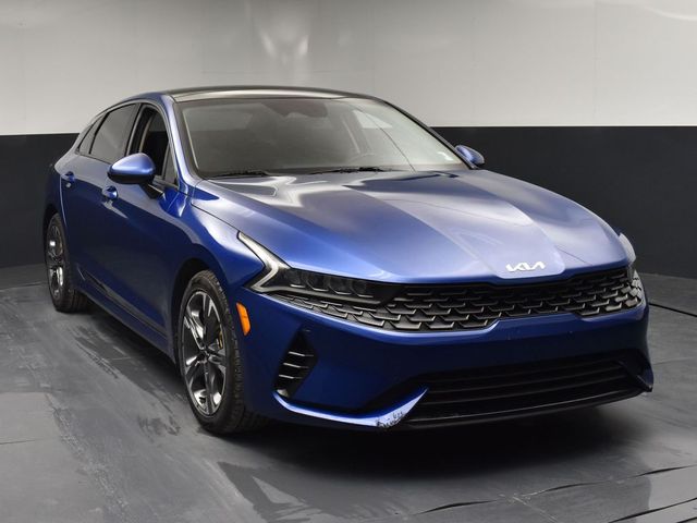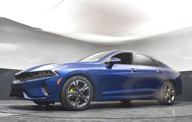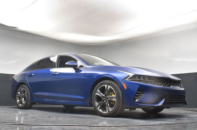 Certified. KIA CERTIFIED PRE-OWNED, GREAT SERVICE RECORDS, PREMIUM PACKAGE 2, NAVIGATION, BLIND SPOT ASSIST, LANE TRACKING, REARVIEW CAMERA, PREMIUM LEATHER, APPLE AIR PLAY, HEATED SEATS, 4-Wheel Disc Brakes, 6 Speakers, ABS brakes, Air Conditioning, Alloy wheels, AM/FM radio: SiriusXM, Apple CarPlay & Android Auto, Auto High-beam Headlights, Automatic temperature control, Brake assist, Bumpers: body-color, Carpeted Floor Mats, Delay-off headlights, Driver door bin, Driver vanity mirror, Dual front impact airbags, Dual front side impact airbags, Electronic Stability Control, Emergency communication system, Four wheel independent suspension, Front anti-roll bar, Front Bucket Seats, Front Center Armrest, Front dual zone A/C, Front reading lights, Fully automatic headlights, Heated & Ventilated Front Bucket Seats, Heated door mirrors, Heated front seats, Illuminated entry, Knee airbag, Leatherette Seat Trim, Low tire pressure warning, Navigation System, Occupant sensing airbag, Outside temperature display, Overhead airbag, Overhead console, Panic alarm, Passenger door bin, Passenger vanity mirror, Power door mirrors, Power driver seat, Power moonroof, Power steering, Power windows, Radio data system, Radio: AM/FM/MP3 Audio System, Rear anti-roll bar, Rear reading lights, Rear seat center armrest, Rear side impact airbag, Rear window defroster, Remote keyless entry, Security system, Smart Key w/ Push Button and Remote Start, Speed control, Speed-sensing steering, Split folding rear seat, Steering wheel mounted audio controls, Tachometer, Telescoping steering wheel, Tilt steering wheel, Traction control, Trip computer, Variably intermittent wipers, Ventilated front seats, Wheels: 7.5J x 18" Gray Machined Finish Alloy. Jackson Advatange includes Lifetime Carwashes, Lifetime Loaner vehicle, Anti-Theft Window Etch, Sapphire Blue 2022 Kia K5 EX FWD 8-Speed Automatic I4 Kia Certified Pre-Owned Details: