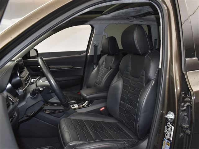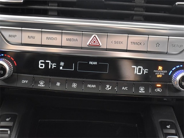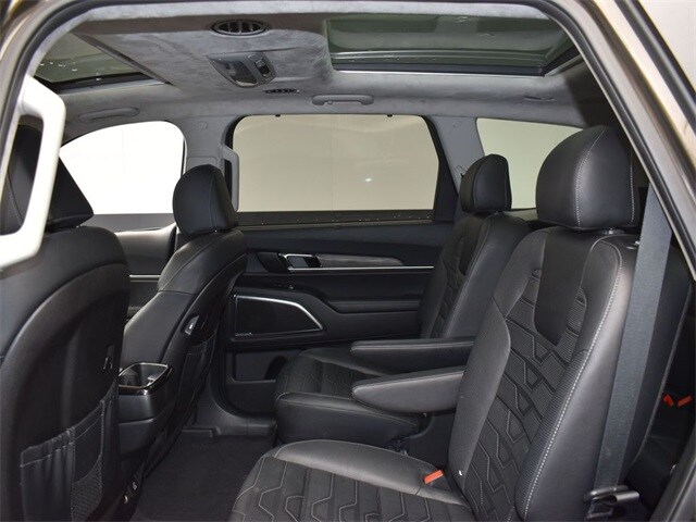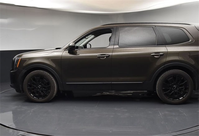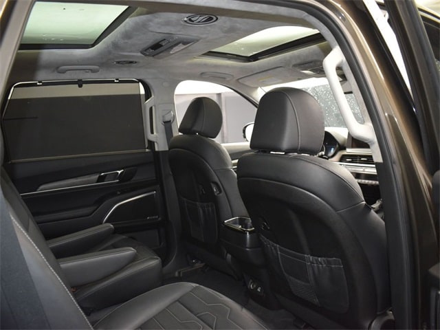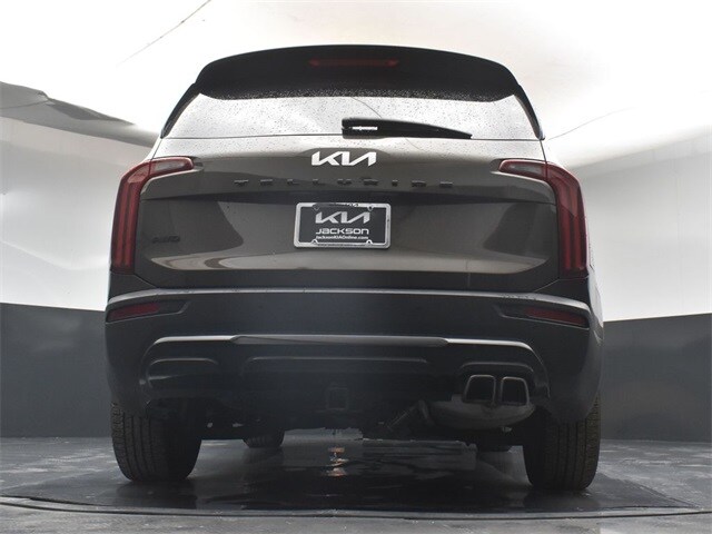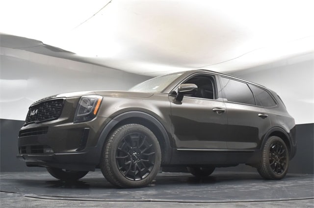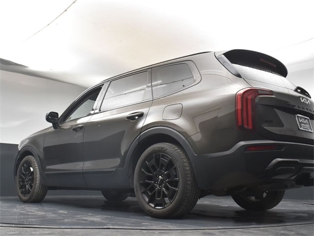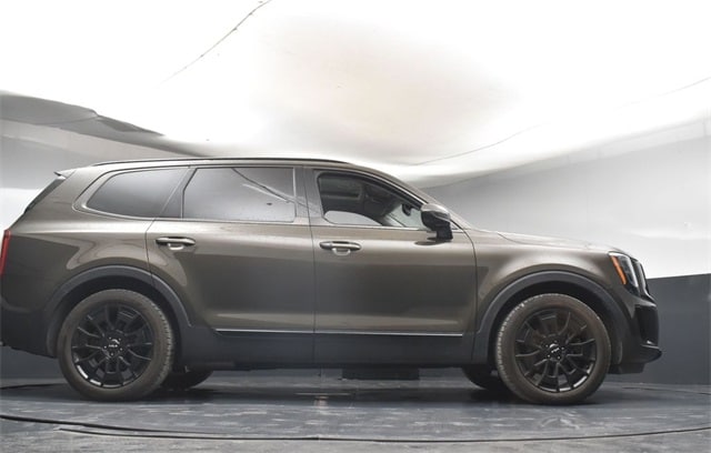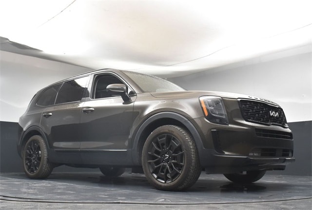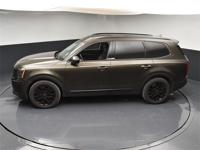Certified. KIA CERTIFIED PRE-OWNED, 10 Speakers, 110V Inverter, 3.648 Axle Ratio, 3rd row seats: split-bench, 4-Wheel Disc Brakes, ABS brakes, Air Conditioning, Alloy wheels, AM/FM radio: SiriusXM, Apple CarPlay & Android Auto, Auto High-beam Headlights, Auto-dimming Rear-View mirror, Automatic temperature control, Black Finish Radiator Grille, Black Wheel Lock, Body Color Exterior Door Handles, Brake assist, Bumpers: body-color, Carpeted Floor Mats, Compass, Delay-off headlights, Driver door bin, Driver vanity mirror, Dual front impact airbags, Dual front side impact airbags, Electronic Stability Control, Emergency communication system: 911 Connect, Exclusive Black Fog Light Bezel, Exclusive Black Headlight Bezels, Four wheel independent suspension, Front & Rear Gloss Black Finish Bumper Skid Plates, Front anti-roll bar, Front Bucket Seats, Front Center Armrest, Front dual zone A/C, Front fog lights, Front reading lights, Fully automatic headlights, Garage door transmitter: HomeLink, Gloss Black Finish Exterior Emblems, Gloss Black Finish Front & Rear Door Garnish, Gloss Black Finish Roof Rails, harman/kardon® Speakers, Heads-Up Display, Heated & Ventilated 2nd Row Seats, Heated & Ventilated Front Bucket Seats, Heated door mirrors, Heated front seats, Heated steering wheel, Illuminated entry, Knee airbag, Leather Seat Trim, Leather Shift Knob, Leather steering wheel, Low tire pressure warning, Memory seat, Navigation System, Nightfall Edition Package, Occupant sensing airbag, Outside temperature display, Overhead airbag, Overhead console, Panic alarm, Passenger door bin, Passenger vanity mirror, Power door mirrors, Power driver seat, Power Liftgate, Power moonroof, Power passenger seat, Power steering, Power windows, Premium Cloth Headliner & Pillar Trim, Premium Nappa Leather Seat Trim, Radio data system, Radio: AM/FM harman/kardon Audio System, Rain-Sensing Front Windshield Wipers, Rear air conditioning, Rear anti-roll bar, Rear audio controls, Rear reading lights, Rear window defroster, Rear window wiper, Reclining 3rd row seat, Remote keyless entry, Roof rack: rails only, Security system, Smart Key w/ Push Button and Remote Start, Speed control, Speed-sensing steering, Split folding rear seat, Spoiler, Steering wheel mounted audio controls, SX Prestige Package, Tachometer, Telescoping steering wheel, Tilt steering wheel, Traction control, Trip computer, Turn signal indicator mirrors, Variably intermittent wipers, Ventilated front seats, Wheels: 20" x 7.5" Black Alloy, Wheels: 20" x 7.5" Exclusive Black Alloy. Jackson Advatange includes Lifetime Carwashes, Lifetime Loaner vehicle, Anti-Theft Window Etch, Dark Moss 2022 Kia Telluride SX AWD 8-Speed Automatic 3.8L V6 DOHC Kia Certified Pre-Owned Details: