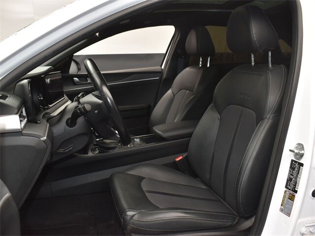 CARFAX One-Owner. Certified. KIA CERTIFIED PRE-OWNED, CLEAN CARFAX HISTORY, ONE OWNER, LOCAL TRADE IN, PREMIUM PACKAGE, NAVIGATION, BLIND SPOT ASSIST, LANE TRACKING, REARVIEW CAMERA, PANORAMA SUNROOF, PREMIUM LEATHER, 4-Wheel Disc Brakes, 6 Speakers, ABS brakes, Air Conditioning, Alloy wheels, AM/FM radio: SiriusXM, Apple CarPlay & Android Auto, Auto High-beam Headlights, Automatic temperature control, Brake assist, Bumpers: body-color, Cargo Net, Carpeted Floor Mats, Cloth/SynTex Seat Trim, Delay-off headlights, Driver door bin, Driver vanity mirror, Dual front impact airbags, Dual front side impact airbags, Electronic Stability Control, Forward Collision Avoidance-Assist, Four wheel independent suspension, Front anti-roll bar, Front Bucket Seats, Front Center Armrest, Front dual zone A/C, Front fog lights, Front reading lights, Fully automatic headlights, Gloss Black Trim, GT-Line Panoramic Sunroof Package, GT-Line Premium Package, Heated door mirrors, Highway Driving Assist, Illuminated entry, Knee airbag, LED Interior Lighting, LED Projection Headlamps, Low tire pressure warning, Navigation System, Occupant sensing airbag, Outside temperature display, Overhead airbag, Overhead console, Panic alarm, Panoramic Sunroof, Passenger door bin, Passenger vanity mirror, Power door mirrors, Power driver seat, Power steering, Power windows, Radio data system, Radio: AM/FM/MP3 Audio System, Rear anti-roll bar, Rear seat center armrest, Rear side impact airbag, Rear window defroster, Remote keyless entry, Security system, Smart Cruise Control w/Stop & Go, Speed control, Speed-sensing steering, Split folding rear seat, Spoiler, Sport steering wheel, Steering wheel mounted audio controls, Tachometer, Telescoping steering wheel, Tilt steering wheel, Traction control, Trip computer, Turn signal indicator mirrors, Variably intermittent wipers, Wheels: 18" Gloss Black Machined Finish Alloy. Jackson Advatange includes Lifetime Carwashes, Lifetime Loaner vehicle, Anti-Theft Window Etch, Glacial White Pearl 2023 Kia K5 GT-Line FWD 8-Speed Automatic 1.6L I4 DGI Turbocharged DOHC 16V LEV3-ULEV70 180hp Kia Certified Pre-Owned Details: