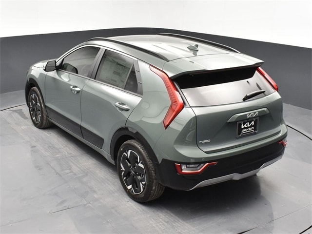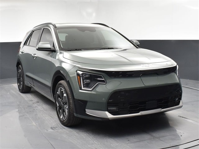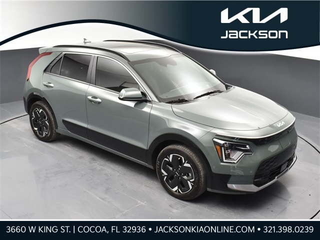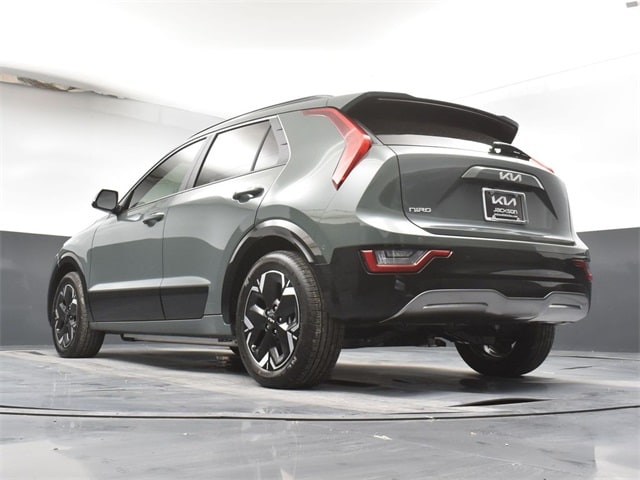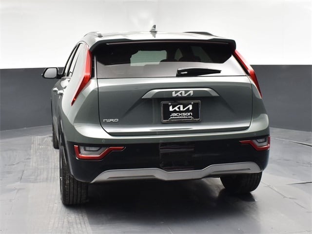 Clean CARFAX. Certified. KIA CERTIFIED PRE-OWNED, CLEAN CARFAX HISTORY, ONE OWNER, PREMIUM PACKAGE, NAVIGATION, BLIND SPOT ASSIST, LANE TRACKING, REARVIEW CAMERA, MOONROOF, SMARTPHONE INTEGRATED NAVIGATION, REAR ENTERTAINMENT SYSTEM, LIGHTING PACKAGE, PREMIUM LEATHER, DRIVERS ASSISTANCE PACKAGE, WARMTH AND COMFORT PACKAGE, PARKING ASSISTANCE PACKAGE, APPLE AIR PLAY, INDUCTIVE WIRELESS CHARGING, HEATED SEATS, Niro EV Wave, 4D Sport Utility, Electric Motor, 1-Speed Automatic, FWD, Cityscape Green, Charcoal Leather, 10.65 Axle Ratio, 4-Wheel Disc Brakes, 8 Speakers, ABS brakes, Air Conditioning, Alloy wheels, AM/FM radio: SiriusXM, Apple CarPlay & Android Auto, Auto High-beam Headlights, Auto-dimming Rear-View mirror, Automatic temperature control, Brake assist, Bumpers: body-color, Cargo Net, Carpet Floor Mats, Delay-off headlights, Driver door bin, Driver vanity mirror, Dual front impact airbags, Dual front side impact airbags, Electronic Stability Control, Emergency communication system: Kia Connect (includes 1 year free trial), Exterior Parking Camera Rear, Four wheel independent suspension, Front anti-roll bar, Front Bucket Seats, Front Center Armrest, Front dual zone A/C, Front fog lights, Front reading lights, Fully automatic headlights, Garage door transmitter: HomeLink, harman/kardon® Speakers, Heated & Ventilated Front Bucket Seats, Heated door mirrors, Heated front seats, Heated Rear Seats, Heated steering wheel, Illuminated entry, Interior Light Kit, Knee airbag, Low tire pressure warning, Memory seat, Navigation System, Occupant sensing airbag, Outside temperature display, Overhead airbag, Overhead console, Panic alarm, Passenger door bin, Passenger vanity mirror, Perforated Vegan Leather-Trimmed Seats, Power door mirrors, Power driver seat, Power Liftgate, Power moonroof, Power passenger seat, Power steering, Power windows, Radio: harman/kardon Premium Audio System, Rain sensing wipers, Rear anti-roll bar, Rear Bumper Applique, Rear seat center armrest, Rear window defroster, Rear window wiper, Remote keyless entry, Security system, Speed control, Speed-sensing steering, Split folding rear seat, Spoiler, Steering wheel mounted audio controls, Telescoping steering wheel, Tilt steering wheel, Traction control, Trip computer, Turn signal indicator mirrors, Two-Level Cargo Tray, Two-Level Luggage Board, Variably intermittent wipers, Ventilated front seats, Wheel Locks, Wheels: 7.0J x 17" Aero Alloy. Jackson Advatange includes Lifetime Carwashes, Lifetime Loaner vehicle, Anti-Theft Window Etch, Cityscape Green 2023 Kia Niro EV Wave FWD 1-Speed Automatic Electric Motor Kia Certified Pre-Owned Details: