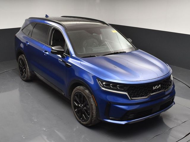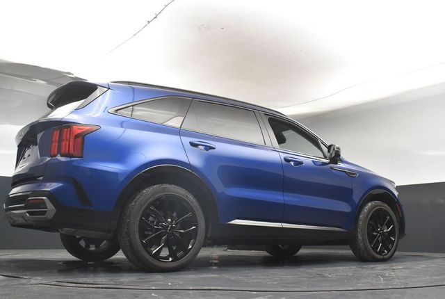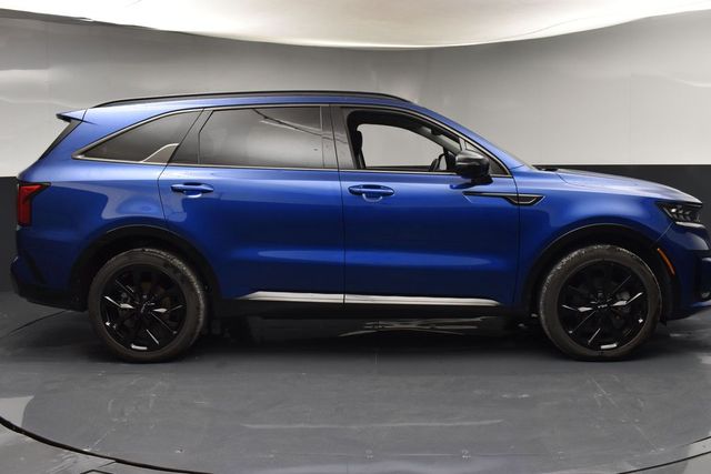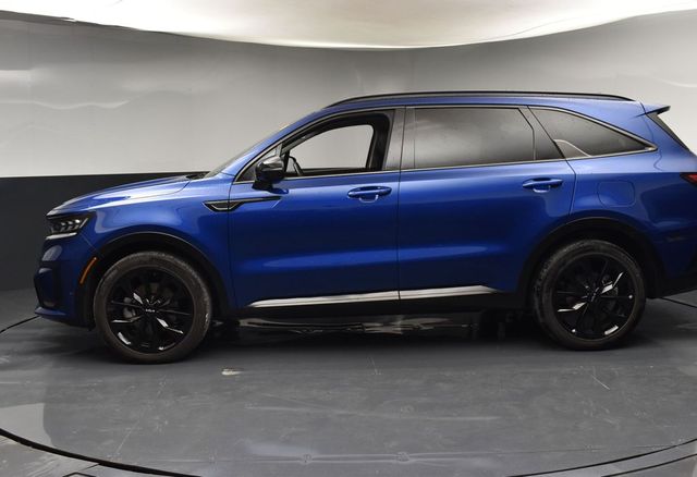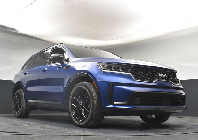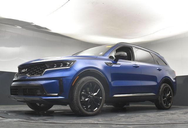 CARFAX One-Owner. Clean CARFAX. Certified. KIA CERTIFIED PRE-OWNED, ONE OWNER, LOCAL TRADE IN, GREAT SERVICE RECORDS, PREMIUM PACKAGE 3, NAVIGATION, BLIND SPOT ASSIST, LANE TRACKING, REARVIEW CAMERA, APPLE AIR PLAY, 3.316 Axle Ratio, 3rd row seats: split-bench, 4-Wheel Disc Brakes, 6 Speakers, ABS brakes, Air Conditioning, Alloy wheels, AM/FM radio: SiriusXM, Apple CarPlay & Android Auto, Auto High-beam Headlights, Auto-dimming Rear-View mirror, Automatic temperature control, Brake assist, Bumpers: body-color, Cargo Net, Carpet Floor Mats, Delay-off headlights, Driver door bin, Driver vanity mirror, Dual front impact airbags, Dual front side impact airbags, Electronic Stability Control, Emergency communication system, Exterior Parking Camera Rear, Four wheel independent suspension, Front anti-roll bar, Front Bucket Seats, Front Center Armrest, Front dual zone A/C, Front fog lights, Front reading lights, Fully automatic headlights, Heated door mirrors, Heated Front Bucket Seats, Heated front seats, Illuminated entry, Knee airbag, Leather steering wheel, Low tire pressure warning, Navigation System, Occupant sensing airbag, Outside temperature display, Overhead airbag, Overhead console, Panic alarm, Passenger door bin, Passenger vanity mirror, Power door mirrors, Power driver seat, Power Liftgate, Power moonroof, Power passenger seat, Power steering, Power windows, Radio data system, Radio: AM/FM Audio System, Rain sensing wipers, Rear air conditioning, Rear anti-roll bar, Rear reading lights, Rear window defroster, Rear window wiper, Remote keyless entry, Roof rack: rails only, Security system, Smart Key w/ Push Button and Remote Start, Speed control, Speed-sensing steering, Split folding rear seat, Spoiler, Steering wheel mounted audio controls, SynTex Artificial Leather Seat Trim, Tachometer, Telescoping steering wheel, Tilt steering wheel, Traction control, Trip computer, Turn signal indicator mirrors, Variably intermittent wipers, Wheels: 8.5J x 20" Gloss Black Alloy. Jackson Advatange includes Lifetime Carwashes, Lifetime Loaner vehicle, Anti-Theft Window Etch, Sapphire Blue 2023 Kia Sorento SX FWD 8-Speed DCT 2.5L I4 DGI Turbocharged DOHC 16V LEV3-ULEV70 281hp