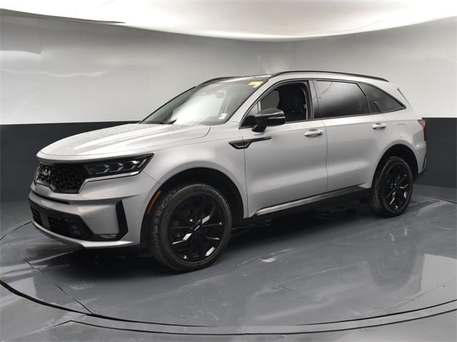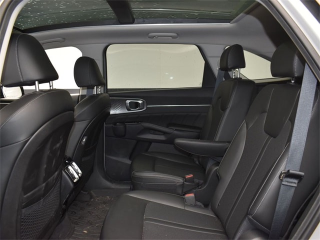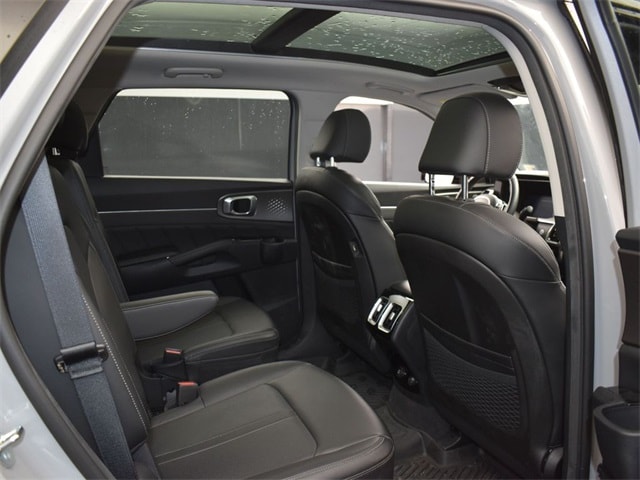 CARFAX One-Owner. Certified. KIA CERTIFIED PRE-OWNED, CLEAN CARFAX HISTORY, ONE OWNER, NAVIGATION, 3RD ROW SEATING, HEATED SEATS, 3.316 Axle Ratio, 3rd row seats: split-bench, 4-Wheel Disc Brakes, 6 Speakers, ABS brakes, Air Conditioning, Alloy wheels, AM/FM radio: SiriusXM, Apple CarPlay & Android Auto, Auto High-beam Headlights, Auto-dimming Rear-View mirror, Automatic temperature control, Brake assist, Bumpers: body-color, Cargo Cover, Cargo Net, Carpet Floor Mats, Delay-off headlights, Driver door bin, Driver vanity mirror, Dual front impact airbags, Dual front side impact airbags, Electronic Stability Control, Emergency communication system, Exterior Parking Camera Rear, Four wheel independent suspension, Front anti-roll bar, Front Bucket Seats, Front Center Armrest, Front dual zone A/C, Front fog lights, Front reading lights, Fully automatic headlights, Heated door mirrors, Heated Front Bucket Seats, Heated front seats, Illuminated entry, Knee airbag, Leather steering wheel, Low tire pressure warning, Navigation System, Occupant sensing airbag, Outside temperature display, Overhead airbag, Overhead console, Panic alarm, Passenger door bin, Passenger vanity mirror, Power door mirrors, Power driver seat, Power Liftgate, Power moonroof, Power passenger seat, Power steering, Power windows, Radio data system, Radio: AM/FM Audio System, Rain sensing wipers, Rear air conditioning, Rear anti-roll bar, Rear reading lights, Rear window defroster, Rear window wiper, Remote keyless entry, Roof rack: rails only, Security system, Smart Key w/ Push Button and Remote Start, Speed control, Speed-sensing steering, Split folding rear seat, Spoiler, Steering wheel mounted audio controls, SynTex Artificial Leather Seat Trim, Tachometer, Telescoping steering wheel, Tilt steering wheel, Traction control, Trip computer, Turn signal indicator mirrors, Variably intermittent wipers, Wheels: 8.5J x 20" Gloss Black Alloy. Jackson Advatange includes Lifetime Carwashes, Lifetime Loaner vehicle, Anti-Theft Window Etch, Wolf Gray 2023 Kia Sorento SX FWD 8-Speed DCT 2.5L I4 DGI Turbocharged DOHC 16V LEV3-ULEV70 281hp Kia Certified Pre-Owned Details:
