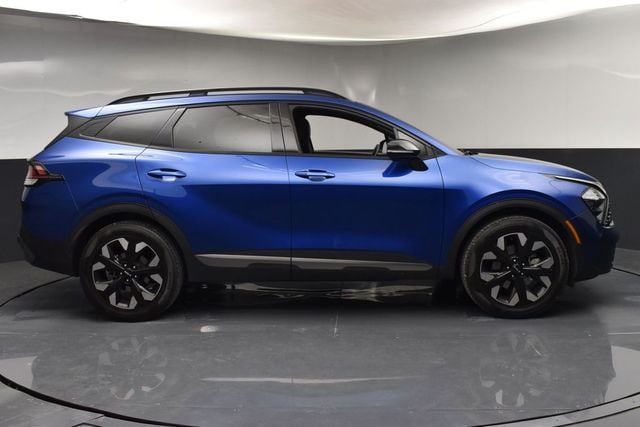 Certified. LOCAL TRADE IN, GREAT SERVICE RECORDS, PREMIUM PACKAGE, PREMIUM PACKAGE 3, NAVIGATION, BLIND SPOT ASSIST, LANE TRACKING, REARVIEW CAMERA, MOONROOF, AWD, 4-Wheel Disc Brakes, 6 Speakers, ABS brakes, Air Conditioning, Alloy wheels, AM/FM radio: SiriusXM, Apple CarPlay & Android Auto, Auto High-beam Headlights, Automatic temperature control, Axle Ratio: 3.648, Brake assist, Bumpers: body-color, Cargo Net Hybrid w/o Audio, Compass, Delay-off headlights, Driver door bin, Driver vanity mirror, Dual front impact airbags, Dual front side impact airbags, Electronic Stability Control, Emergency communication system, Four wheel independent suspension, Front anti-roll bar, Front Bucket Seats, Front Center Armrest, Front dual zone A/C, Fully automatic headlights, harman/kardon® Speakers, Heated door mirrors, Heated Front Bucket Seats, Heated front seats, Illuminated entry, Leather Shift Knob, Leather steering wheel, LED Interior Lighting, Low tire pressure warning, Navigation System, Occupant sensing airbag, Outside temperature display, Overhead airbag, Overhead console, Panic alarm, Panoramic Sunroof, Passenger door bin, Passenger vanity mirror, Power door mirrors, Power driver seat, Power steering, Power windows, Premium Leatherette Seat Trim, Radio: AM/FM/HD Audio System, Rain sensing wipers, Rear anti-roll bar, Rear seat center armrest, Rear window defroster, Rear window wiper, Remote keyless entry, Security system, Smart Power Liftgate, Speed control, Speed-sensing steering, Split folding rear seat, Spoiler, Steering wheel mounted audio controls, Tachometer, Telescoping steering wheel, Tilt steering wheel, Traction control, Trip computer, Turn signal indicator mirrors, Variably intermittent wipers, Wheels: 19" Gloss Black Alloy, X-Line Premium Package. Jackson Advatange includes Lifetime Carwashes, Lifetime Loaner vehicle, Anti-Theft Window Etch, Sapphire Blue 2023 Kia Sportage X-Line AWD 8-Speed Automatic I4 Kia Certified Pre-Owned Details: