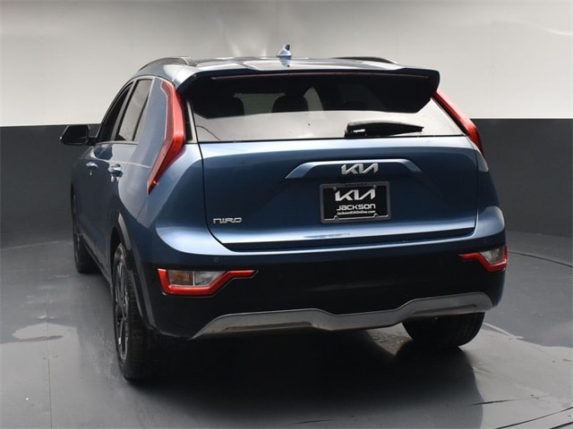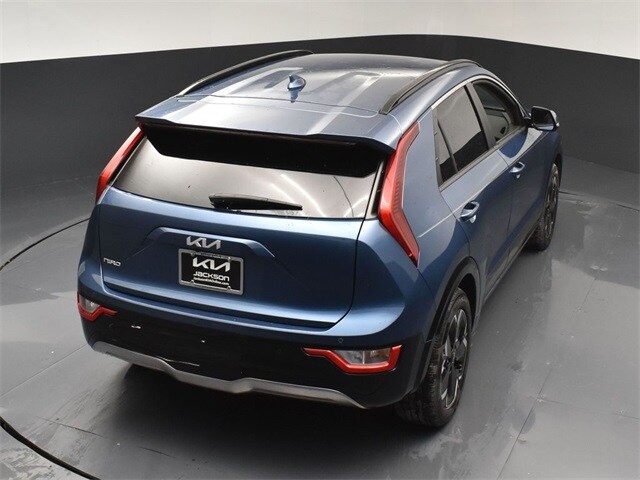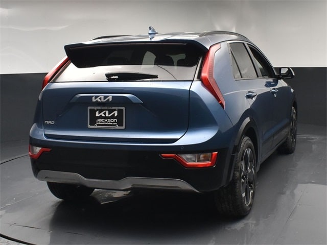 Clean CARFAX. Certified. KIA CERTIFIED PRE-OWNED, CLEAN CARFAX HISTORY, ONE OWNER, GREAT SERVICE RECORDS, REARVIEW CAMERA, 10.65 Axle Ratio, 4-Wheel Disc Brakes, 6 Speakers, 7J x 17" Alloy Wheels, ABS brakes, Air Conditioning, Alloy wheels, AM/FM radio: SiriusXM, Apple CarPlay & Android Auto, Auto High-beam Headlights, Automatic temperature control, Brake assist, Bumpers: body-color, Carpet Floor Mats, Cloth & Vegan Leather-Trimmed Seats, Delay-off headlights, Driver door bin, Driver vanity mirror, Dual front impact airbags, Dual front side impact airbags, Electronic Stability Control, Emergency communication system: Kia Connect (includes 1 year free trial), Exterior Parking Camera Rear, Four wheel independent suspension, Front anti-roll bar, Front Bucket Seats, Front Center Armrest, Front dual zone A/C, Front reading lights, Fully automatic headlights, Heat Pump, Heated door mirrors, Heated Front Bucket Seats (3-Steps), Heated front seats, Heated Rear Seats, Heated Steering Wheel, Illuminated entry, Knee airbag, Low tire pressure warning, Navigation System, Occupant sensing airbag, Outside temperature display, Overhead airbag, Overhead console, Panic alarm, Passenger door bin, Passenger vanity mirror, Power door mirrors, Power driver seat, Power Liftgate, Power steering, Power windows, Radio: 6-Speaker Audio System, Rain sensing wipers, Rear anti-roll bar, Rear seat center armrest, Rear window defroster, Rear window wiper, Remote keyless entry, Security system, Speed control, Speed-sensing steering, Split folding rear seat, Spoiler, Steering wheel mounted audio controls, Telescoping steering wheel, Tilt steering wheel, Traction control, Trip computer, Turn signal indicator mirrors, Variably intermittent wipers, Wind Preserve Package. Jackson Advatange includes Lifetime Carwashes, Lifetime Loaner vehicle, Anti-Theft Window Etch, Mineral Blue 2024 Kia Niro EV Wind FWD 1-Speed Automatic Electric Motor Kia Certified Pre-Owned Details: