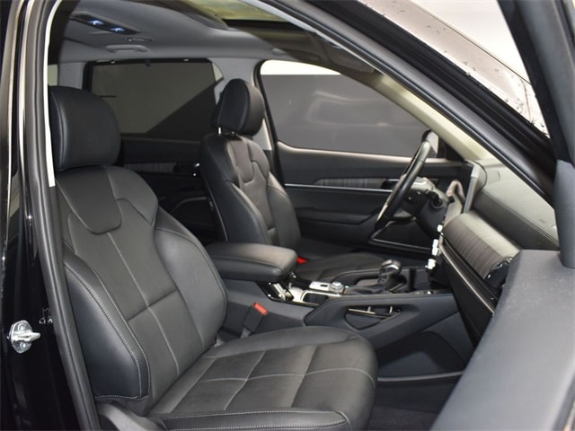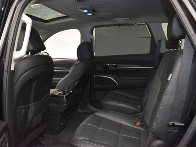 CARFAX One-Owner. Certified. KIA CERTIFIED PRE-OWNED, CLEAN CARFAX HISTORY, ONE OWNER, HEATED SEATS, Telluride EX, 4D Sport Utility, 3.8L V6 DOHC, 8-Speed Automatic, FWD, Ebony Black, Black Leather, 2nd Row Captain Chairs, 3.510 Axle Ratio, 3rd row seats: split-bench, 4-Wheel Disc Brakes, 6 Speakers, ABS brakes, Air Conditioning, Alloy wheels, AM/FM radio: SiriusXM, Apple CarPlay & Android Auto, Auto High-beam Headlights, Auto-dimming Rear-View mirror, Automatic temperature control, Brake assist, Bumpers: body-color, Carpet Floor Mats, Compass, Delay-off headlights, Driver door bin, Driver vanity mirror, Dual front impact airbags, Dual front side impact airbags, Electronic Stability Control, Emergency communication system: 911 Connect, EX Captain's Chair Package, Exterior Parking Camera Rear, Four wheel independent suspension, Front anti-roll bar, Front Bucket Seats, Front Center Armrest, Front dual zone A/C, Front reading lights, Fully automatic headlights, Heated & Ventilated Front Bucket Seats, Heated door mirrors, Heated front seats, Illuminated entry, Knee airbag, Leather Seat Trim, Leather Shift Knob, Leather steering wheel, Low tire pressure warning, Navigation System, Occupant sensing airbag, Outside temperature display, Overhead airbag, Overhead console, Panic alarm, Passenger door bin, Passenger vanity mirror, Power door mirrors, Power driver seat, Power Liftgate, Power moonroof, Power passenger seat, Power steering, Power windows, Radio data system, Radio: AM/FM Display Audio System, Rear air conditioning, Rear anti-roll bar, Rear audio controls, Rear reading lights, Rear seat center armrest, Rear side impact airbag, Rear window defroster, Rear window wiper, Reclining 3rd row seat, Remote keyless entry, Roof rack: rails only, Security system, Smart Key w/ Push Button and Remote Start, Speed control, Speed-sensing steering, Split folding rear seat, Spoiler, Steering wheel mounted audio controls, Tachometer, Telescoping steering wheel, Tilt steering wheel, Traction control, Trip computer, Turn signal indicator mirrors, Variably intermittent wipers, Ventilated front seats, Wheels: 20" x 7.5" Black Finish. Jackson Advatange includes Lifetime Carwashes, Lifetime Loaner vehicle, Anti-Theft Window Etch, Ebony Black 2024 Kia Telluride EX FWD 8-Speed Automatic 3.8L V6 DOHC Kia Certified Pre-Owned Details: