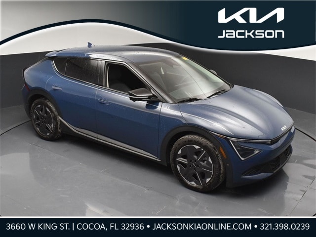 CARFAX One-Owner. Clean CARFAX. Certified. KIA CERTIFIED PRE-OWNED, CLEAN CARFAX HISTORY, ONE OWNER, LOCAL TRADE IN, 4-Wheel Disc Brakes, 6 Speakers, ABS brakes, Air Conditioning, Alloy wheels, AM/FM radio: SiriusXM, Apple CarPlay & Android Auto, Auto High-beam Headlights, Auto-Dimming Mirror w/HomeLink, Auto-dimming Rear-View mirror, Automatic temperature control, Blind-Spot View Monitor, Brake assist, Bumpers: body-color, Cargo Mat w/Luggage Board, Cargo Net, Carpeted Floor Mats, Delay-off headlights, Driver door bin, Driver vanity mirror, Dual front impact airbags, Dual front side impact airbags, Electronic Stability Control, Emergency communication system, Forward Collision Avoidance-Assist, Four wheel independent suspension, Front anti-roll bar, Front Bucket Seats, Front Center Armrest, Front dual zone A/C, Front reading lights, Fully automatic headlights, Heated door mirrors, Heated front seats, Heated Front Seats (3-Stage), Heated rear seats, Heated steering wheel, Highway Driving Assist 2, Illuminated entry, Knee airbag, Light LR Technology Package, Low tire pressure warning, Navigation system: AVN 5.0 Navigation System, Occupant sensing airbag, Outside temperature display, Overhead airbag, Overhead console, Panic alarm, Passenger door bin, Passenger vanity mirror, Power door mirrors, Power driver seat, Power steering, Power windows, Radio: AM/FM/HD Radio/SiriusXM w/Navigation, Rain sensing wipers, Rear anti-roll bar, Rear seat center armrest, Rear side impact airbag, Rear window defroster, Recycled Fabric & Vegan Leather Seat Trim, Remote keyless entry, Reverse Parking Collision Avoidance-Assist, Security system, Side Parking Distance Warning, Speed control, Speed-sensing steering, Split folding rear seat, Spoiler, Steering wheel mounted audio controls, Surround View Monitor, Telescoping steering wheel, Tilt steering wheel, Traction control, Trip computer, Turn signal indicator mirrors, Variably intermittent wipers, Wheels: 7.5J x 19" Dark Gray Painted Alloy. Jackson Advatange includes Lifetime Carwashes, Lifetime Loaner vehicle, Anti-Theft Window Etch, Midnight Lake Blue 2025 Kia EV6 Light AWD 1-Speed Automatic Electric Motor Kia Certified Pre-Owned Details: