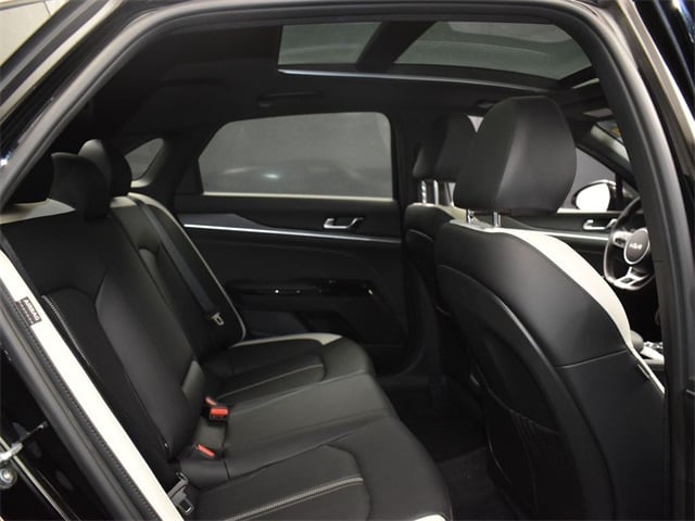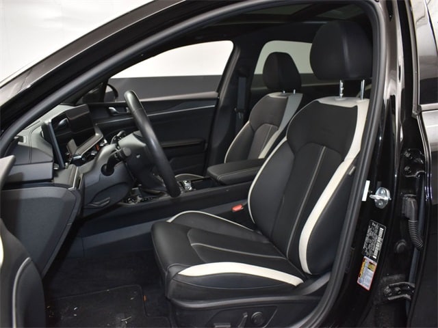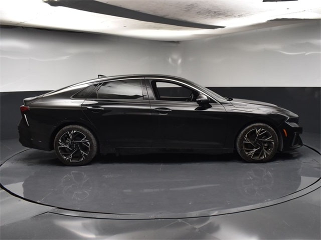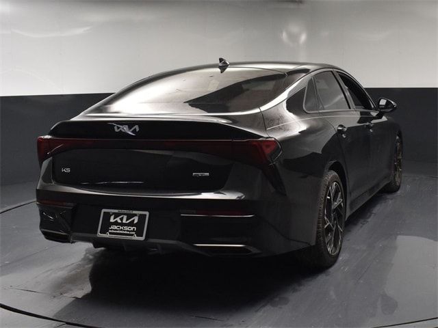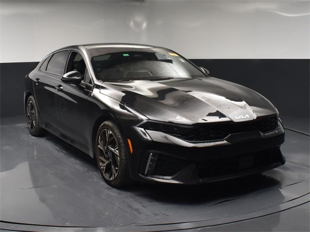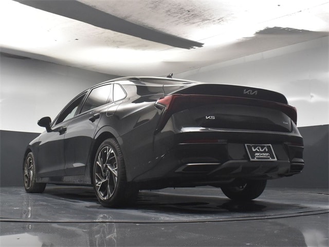 CARFAX One-Owner. Certified. KIA CERTIFIED PRE-OWNED, CLEAN CARFAX HISTORY, ONE OWNER, LOCAL TRADE IN, GREAT SERVICE RECORDS, PREMIUM PACKAGE, NAVIGATION, BLIND SPOT ASSIST, LANE TRACKING, REARVIEW CAMERA, PANORAMA SUNROOF, SMARTPHONE INTEGRATED NAVIGATION, PREMIUM LEATHER, PARKING ASSISTANCE PACKAGE, APPLE AIR PLAY, HEATED SEATS, 4-Wheel Disc Brakes, 6 Speakers, ABS brakes, Active Sound Design, Air Conditioning, Alloy wheels, AM/FM radio: SiriusXM, Auto High-beam Headlights, Automatic temperature control, Bose Premium Audio, Brake assist, Bumpers: body-color, Cargo Net, Carpeted Floor Mats, Delay-off headlights, Driver door bin, Driver vanity mirror, Dual front impact airbags, Dual front side impact airbags, EC Mirror w/Homelink, Electronic Stability Control, Emergency communication system: Kia Connect (includes 1 year free trial), Four wheel independent suspension, Front anti-roll bar, Front Bucket Seats, Front Center Armrest, Front dual zone A/C, Front fog lights, Front reading lights, Fully automatic headlights, GT-Line Premium Package, Heated door mirrors, Heated Front Bucket Seats, Heated front seats, Heated steering wheel, Illuminated entry, Knee airbag, Leather Shift Knob, Leather steering wheel, LED Interior Lighting, Low tire pressure warning, Navigation System, Occupant sensing airbag, Outside temperature display, Overhead airbag, Overhead console, Panic alarm, Panoramic Sunroof, Passenger door bin, Passenger vanity mirror, Power door mirrors, Power driver seat, Power steering, Power windows, Radio data system, Radio: AM/FM Audio System, Rear anti-roll bar, Rear seat center armrest, Rear side impact airbag, Rear window defroster, Remote keyless entry, Security system, Speed control, Speed-sensing steering, Split folding rear seat, Sport steering wheel, Steering wheel mounted audio controls, Tachometer, Telescoping steering wheel, Tilt steering wheel, Traction control, Trip computer, Turn signal indicator mirrors, Variably intermittent wipers, Wheels: 18" x 7.5J Gloss Black Machined Finish Alloy. Jackson Advatange includes Lifetime Carwashes, Lifetime Loaner vehicle, Anti-Theft Window Etch, Aurora Black Pearl 2025 Kia K5 GT-Line FWD 8-Speed Automatic I4 Kia Certified Pre-Owned Details: