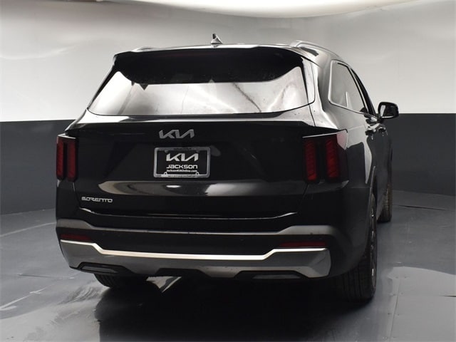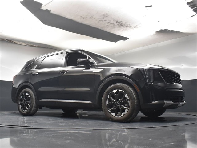 Clean CARFAX. Certified. KIA CERTIFIED PRE-OWNED, CLEAN CARFAX HISTORY, ONE OWNER, Sorento S, 4D Sport Utility, 2.5L I4 DGI DOHC 16V LEV3-SULEV30 191hp, 8-Speed Automatic, FWD, Ebony Black, Black Artificial Leather, 3rd row seats: split-bench, 4-Wheel Disc Brakes, 6 Speakers, ABS brakes, Air Conditioning, Alloy wheels, AM/FM radio: SiriusXM, Apple CarPlay & Android Auto, Auto High-beam Headlights, Automatic temperature control, Brake assist, Bumpers: body-color, Carpeted Floor Mats, Delay-off headlights, Driver door bin, Driver vanity mirror, Dual front impact airbags, Dual front side impact airbags, Electronic Stability Control, Emergency communication system: 911 Connect, Exterior Parking Camera Rear, Four wheel independent suspension, Front anti-roll bar, Front Bucket Seats, Front Center Armrest, Front dual zone A/C, Front reading lights, Fully automatic headlights, Heated door mirrors, Heated Front Bucket Seats, Heated front seats, Illuminated entry, Knee airbag, Leather Shift Knob, Leather steering wheel, Low tire pressure warning, Navigation System, Occupant sensing airbag, Outside temperature display, Overhead airbag, Overhead console, Panic alarm, Passenger door bin, Passenger vanity mirror, Power door mirrors, Power driver seat, Power steering, Power windows, Radio data system, Radio: AM/FM Standard Sound System, Rear anti-roll bar, Rear reading lights, Rear seat center armrest, Rear side impact airbag, Rear window defroster, Rear window wiper, Security system, Speed control, Speed-sensing steering, Split folding rear seat, Spoiler, Steering wheel mounted audio controls, SynTex Artificial Leather Seat Trim, Tachometer, Telescoping steering wheel, Tilt steering wheel, Traction control, Trip computer, Turn signal indicator mirrors, Variably intermittent wipers, Wheel Locks, Wheels: 18" Gloss Black Alloy. Jackson Advatange includes Lifetime Carwashes, Lifetime Loaner vehicle, Anti-Theft Window Etch, Ebony Black 2025 Kia Sorento S FWD 8-Speed Automatic 2.5L I4 DGI DOHC 16V LEV3-SULEV30 191hp Kia Certified Pre-Owned Details: