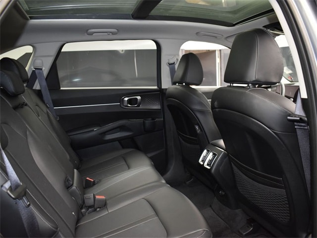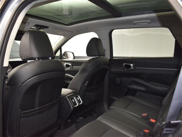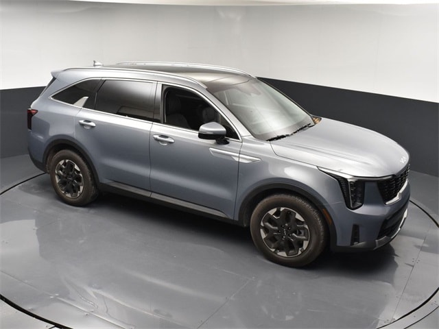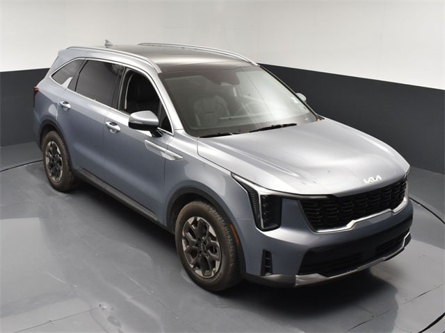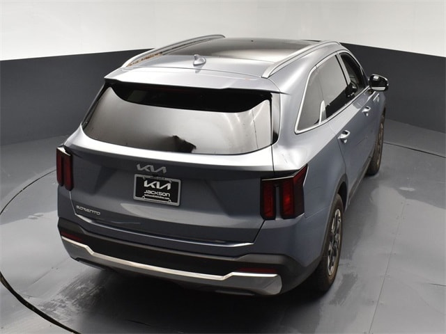 CARFAX One-Owner. Clean CARFAX. Certified. KIA CERTIFIED PRE-OWNED, REARVIEW CAMERA, 3rd row seats: split-bench, 4-Wheel Disc Brakes, 6 Speakers, ABS brakes, Air Conditioning, Alloy wheels, AM/FM radio: SiriusXM, Apple CarPlay & Android Auto, Auto High-beam Headlights, Automatic temperature control, Brake assist, Bumpers: body-color, Cargo Net, Cargo Tray, Carpeted Floor Mats, Cross Bars, Delay-off headlights, Driver door bin, Driver vanity mirror, Dual front impact airbags, Dual front side impact airbags, Electronic Stability Control, Emergency communication system: 911 Connect, Exterior Parking Camera Rear, Four wheel independent suspension, Front anti-roll bar, Front Bucket Seats, Front Center Armrest, Front dual zone A/C, Front reading lights, Fully automatic headlights, Heated door mirrors, Heated Front Bucket Seats, Heated front seats, Illuminated entry, Knee airbag, Leather Shift Knob, Leather steering wheel, LED Interior Lighting, Low tire pressure warning, Navigation System, Occupant sensing airbag, Outside temperature display, Overhead airbag, Overhead console, Panic alarm, Panoramic Power Sunroof w/Power Sunshade, Panoramic Sunroof Package, Passenger door bin, Passenger vanity mirror, Power door mirrors, Power driver seat, Power steering, Power windows, Radio data system, Radio: AM/FM Standard Sound System, Rear anti-roll bar, Rear reading lights, Rear seat center armrest, Rear side impact airbag, Rear window defroster, Rear window wiper, Remote keyless entry, Security system, Speed control, Speed-sensing steering, Split folding rear seat, Spoiler, Steering wheel mounted audio controls, SynTex Artificial Leather Seat Trim, Tachometer, Telescoping steering wheel, Tilt steering wheel, Traction control, Trip computer, Turn signal indicator mirrors, Variably intermittent wipers, Wheels: 18" Gloss Black Alloy. Jackson Advatange includes Lifetime Carwashes, Lifetime Loaner vehicle, Anti-Theft Window Etch, Everlasting Silver 2025 Kia Sorento S FWD 8-Speed Automatic 2.5L I4 DGI DOHC 16V LEV3-SULEV30 191hp Kia Certified Pre-Owned Details: