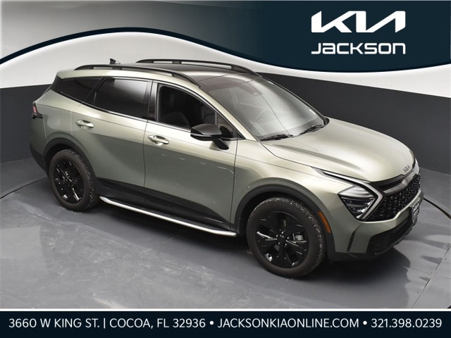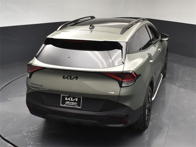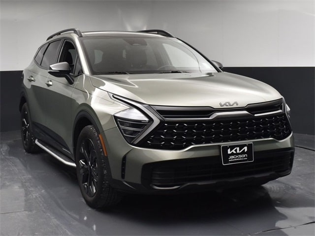 CARFAX One-Owner. Certified. KIA CERTIFIED PRE-OWNED, AWD, 4-Wheel Disc Brakes, 6 Speakers, ABS brakes, Air Conditioning, Alloy wheels, AM/FM radio: SiriusXM, Apple CarPlay & Android Auto, Auto High-beam Headlights, Automatic temperature control, Brake assist, Bumpers: body-color, Cargo Mat, Compass, Cross Bars X-Line, Delay-off headlights, Driver door bin, Driver vanity mirror, Dual front impact airbags, Dual front side impact airbags, EC Mirror w/HomeLink, Electronic Stability Control, Emergency communication system, Four wheel independent suspension, Front anti-roll bar, Front Bucket Seats, Front Center Armrest, Front dual zone A/C, Fully automatic headlights, Heated door mirrors, Heated Front Bucket Seats, Heated front seats, Illuminated Dual Vanity Mirrors, Illuminated entry, Leather steering wheel, LED Interior Lighting, Low tire pressure warning, Metal Front Skid Plate, Navigation System, Occupant sensing airbag, Outside temperature display, Overhead airbag, Overhead console, Panic alarm, Panoramic Sunroof, Passenger door bin, Passenger vanity mirror, Power door mirrors, Power driver seat, Power steering, Power windows, Premium Leatherette Seat Trim, Premium Package, Radio: AM/FM/HD Audio System, Rain sensing wipers, Rear anti-roll bar, Rear seat center armrest, Rear side impact airbag, Rear window defroster, Rear window wiper, Remote keyless entry, Security system, Side Steps, Smart Power Liftgate, Speed control, Speed-sensing steering, Split folding rear seat, Spoiler, Steering wheel mounted audio controls, Tachometer, Telescoping steering wheel, Tilt steering wheel, Tow Hitch w/Harness, Traction control, Trip computer, Turn signal indicator mirrors, Variably intermittent wipers, Wheels: 19" x 7.5J Gloss Black Alloy. Jackson Advatange includes Lifetime Carwashes, Lifetime Loaner vehicle, Anti-Theft Window Etch, Jungle Green 2025 Kia Sportage X-Line AWD 8-Speed Automatic I4 Kia Certified Pre-Owned Details: