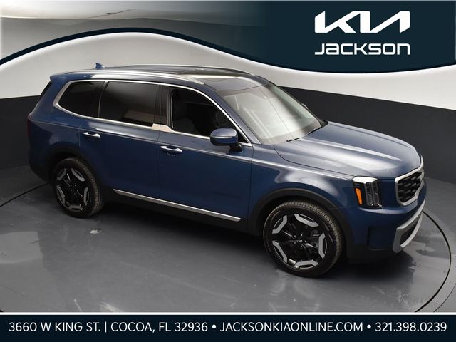 CARFAX One-Owner. Clean CARFAX. Certified. KIA CERTIFIED PRE-OWNED, ONE OWNER, LOCAL TRADE IN, NAVIGATION, 3rd row seats: split-bench, 4-Wheel Disc Brakes, 6 Speakers, ABS brakes, Air Conditioning, Alloy wheels, AM/FM radio: SiriusXM, Apple CarPlay & Android Auto, Auto High-beam Headlights, Automatic temperature control, Brake assist, Bumpers: body-color, Carpeted Floor Mats, Delay-off headlights, Driver door bin, Driver vanity mirror, Dual front impact airbags, Dual front side impact airbags, Electronic Stability Control, Emergency communication system: 911 Connect, Exterior Parking Camera Rear, Folding Cargo Tray, Four wheel independent suspension, Front anti-roll bar, Front Bucket Seats, Front Center Armrest, Front dual zone A/C, Front reading lights, Fully automatic headlights, Heated door mirrors, Heated Front Bucket Seats, Heated front seats, Illuminated entry, Knee airbag, Leather Shift Knob, Leather steering wheel, Low tire pressure warning, Navigation System, Occupant sensing airbag, Outside temperature display, Overhead airbag, Overhead console, Panic alarm, Passenger door bin, Passenger vanity mirror, Power door mirrors, Power driver seat, Power Liftgate, Power moonroof, Power steering, Power windows, Radio data system, Radio: AM/FM Display Audio System, Rear air conditioning, Rear anti-roll bar, Rear audio controls, Rear reading lights, Rear side impact airbag, Rear window defroster, Rear window wiper, Reclining 3rd row seat, Remote keyless entry, Security system, Speed control, Speed-sensing steering, Split folding rear seat, Spoiler, Steering wheel mounted audio controls, SynTex Synthetic Leather Seat Trim, Tachometer, Telescoping steering wheel, Tilt steering wheel, Traction control, Trip computer, Turn signal indicator mirrors, Variably intermittent wipers, Wheels: 20" x 7.5" Black Finish. Jackson Advatange includes Lifetime Carwashes, Lifetime Loaner vehicle, Anti-Theft Window Etch, Midnight Lake Blue 2025 Kia Telluride S AWD 8-Speed Automatic 3.8L V6 DOHC Kia Certified Pre-Owned Details: