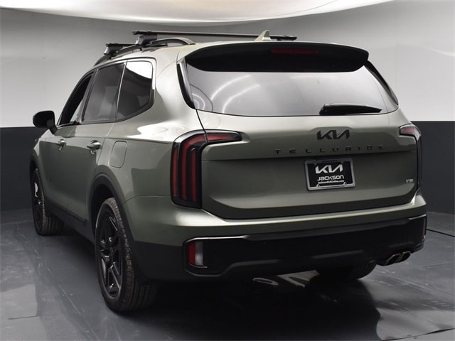CARFAX One-Owner. Clean CARFAX. Certified. KIA CERTIFIED PRE-OWNED, CLEAN CARFAX HISTORY, ONE OWNER, LOCAL TRADE IN, PREMIUM PACKAGE 2, NAVIGATION, BLIND SPOT ASSIST, REARVIEW CAMERA, PANORAMA SUNROOF, PREMIUM LEATHER, 3rd row seats: split-bench, 4-Wheel Disc Brakes, 6 Speakers, ABS brakes, Air Conditioning, Alloy wheels, AM/FM radio: SiriusXM, Apple CarPlay & Android Auto, Auto High-beam Headlights, Auto-dimming Rear-View mirror, Auto-leveling suspension, Automatic temperature control, Brake assist, Bumpers: body-color, Carpet Cargo Mat w/Seatback Protection, Carpeted Floor Mats, Compass, Cross Bars X-Line, Delay-off headlights, Driver door bin, Driver vanity mirror, Dual front impact airbags, Dual front side impact airbags, Electronic Stability Control, Emergency communication system: 911 Connect, Exterior Parking Camera Rear, Four wheel independent suspension, Front anti-roll bar, Front Bucket Seats, Front Center Armrest, Front dual zone A/C, Front reading lights, Fully automatic headlights, Heated & Ventilated Front Bucket Seats, Heated door mirrors, Heated front seats, Heated steering wheel, Illuminated entry, Knee airbag, Leather Seat Trim, Leather Shift Knob, Leather steering wheel, Low tire pressure warning, Mud Guard Kit, Navigation System, Occupant sensing airbag, Outside temperature display, Overhead airbag, Overhead console, Panic alarm, Passenger door bin, Passenger vanity mirror, Power door mirrors, Power driver seat, Power Liftgate, Power moonroof, Power passenger seat, Power steering, Power windows, Radio data system, Radio: AM/FM Display Audio System, Rear air conditioning, Rear anti-roll bar, Rear audio controls, Rear reading lights, Rear side impact airbag, Rear window defroster, Rear window wiper, Reclining 3rd row seat, Remote keyless entry, Security system, Speed control, Speed-sensing steering, Split folding rear seat, Spoiler, Steering wheel mounted audio controls, Tachometer, Telescoping steering wheel, Tilt steering wheel, Traction control, Trip computer, Turn signal indicator mirrors, Variably intermittent wipers, Ventilated front seats, Wheels: 20" x 7.5" Black Finish X-LINE Exclusive. Jackson Advatange includes Lifetime Carwashes, Lifetime Loaner vehicle, Anti-Theft Window Etch, Jungle Green 2025 Kia Telluride EX X-Line AWD 8-Speed Automatic 3.8L V6 DOHC Kia Certified Pre-Owned Details: