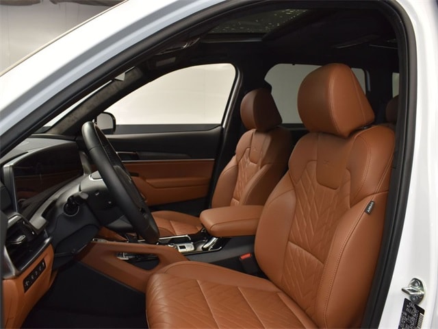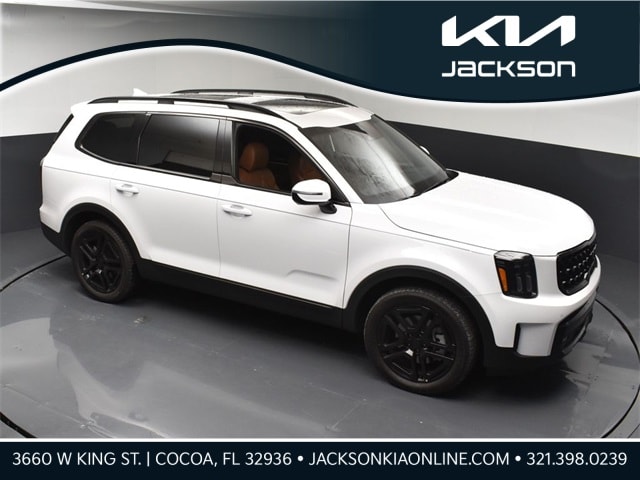 CARFAX One-Owner. Clean CARFAX. Certified. ONE OWNER, LOCAL TRADE IN, NAVIGATION, BLIND SPOT ASSIST, LANE TRACKING, REARVIEW CAMERA, PANORAMA SUNROOF, PREMIUM LEATHER, 10 Speakers, 3rd row seats: split-bench, 4-Wheel Disc Brakes, ABS brakes, Air Conditioning, Alloy wheels, AM/FM radio: SiriusXM, Apple CarPlay & Android Auto, Auto High-beam Headlights, Auto-dimming Rear-View mirror, Auto-leveling suspension, Automatic temperature control, Brake assist, Bumpers: body-color, Cargo Cover, Compass, Cross Bars X-Line, Delay-off headlights, Driver door bin, Driver vanity mirror, Dual front impact airbags, Dual front side impact airbags, Electronic Stability Control, Emergency communication system: 911 Connect, Exterior Parking Camera Rear, Four wheel independent suspension, Front anti-roll bar, Front Bucket Seats, Front Center Armrest, Front dual zone A/C, Front fog lights, Front reading lights, Fully automatic headlights, Garage door transmitter: HomeLink, harman/kardon® Speakers, Heads-Up Display, Heated & Ventilated Front Bucket Seats, Heated door mirrors, Heated front seats, Heated rear seats, Heated steering wheel, Illuminated entry, Knee airbag, Leather Shift Knob, Leather steering wheel, Low tire pressure warning, Memory seat, Nappa Leather Seat Trim, Navigation System, Occupant sensing airbag, Outside temperature display, Overhead airbag, Overhead console, Panic alarm, Passenger door bin, Passenger vanity mirror, Power door mirrors, Power driver seat, Power Liftgate, Power moonroof, Power passenger seat, Power steering, Power windows, Radio data system, Radio: AM/FM Harman Kardon Audio System, Rain sensing wipers, Rear air conditioning, Rear anti-roll bar, Rear audio controls, Rear reading lights, Rear side impact airbag, Rear window defroster, Rear window wiper, Reclining 3rd row seat, Remote keyless entry, Security system, Speed control, Speed-sensing steering, Split folding rear seat, Spoiler, Steering wheel mounted audio controls, Tachometer, Telescoping steering wheel, Terracotta Interior Color Package, Tilt steering wheel, Traction control, Trip computer, Turn signal indicator mirrors, Variably intermittent wipers, Ventilated front seats, Ventilated rear seats, Wheels: 20" x 7.5" Black Finish X-LINE Exclusive. Jackson Advatange includes Lifetime Carwashes, Lifetime Loaner vehicle, Anti-Theft Window Etch, Glacial White Pearl 2025 Kia Telluride SX-Prestige X-Line AWD 8-Speed Automatic 3.8L V6 DOHC Kia Certified Pre-Owned Details:
