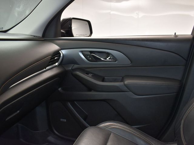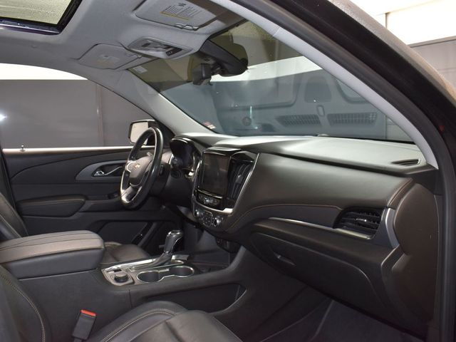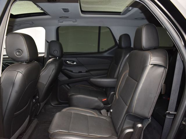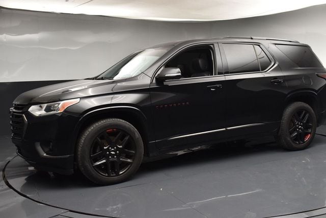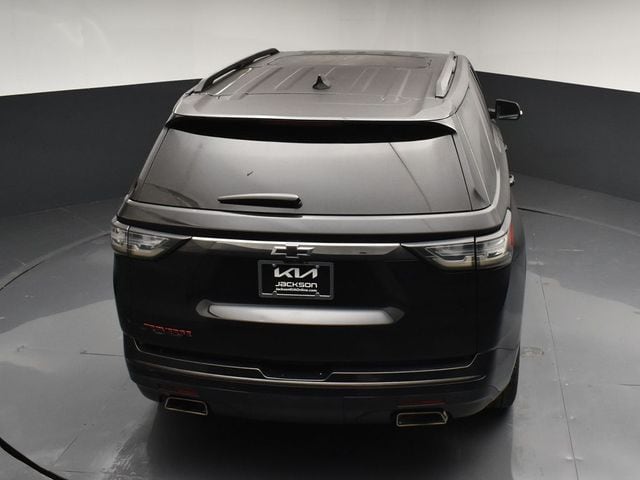 LOCAL TRADE IN, GREAT SERVICE RECORDS, NAVIGATION, 3RD ROW SEATING, HEATED SEATS, 10 Speakers, 3.49 Axle Ratio, 3rd row seats: split-bench, 4-Wheel Disc Brakes, 7-Passenger Seating (2-2-3 Seating Configuration), ABS brakes, Air Conditioning, Alloy wheels, AM/FM radio: SiriusXM, Apple CarPlay/Android Auto, Auto-dimming door mirrors, Auto-dimming Rear-View mirror, Automatic temperature control, Black Door Handles, Bose Premium 10-Speaker Audio System Feature, Brake assist, Bumpers: body-color, Compass, Delay-off headlights, Driver Confidence II Package, Driver door bin, Driver vanity mirror, Dual front impact airbags, Dual front side impact airbags, Dual SkyScape 2-Panel Power Sunroof, Electronic Stability Control, Emergency communication system, Following Distance Indicator, Forward Collision Alert, Four wheel independent suspension, Front anti-roll bar, Front Bucket Seats, Front Center Armrest, Front dual zone A/C, Front fog lights, Front Pedestrian Braking, Front reading lights, Fully automatic headlights, Garage door transmitter, Heated door mirrors, Heated front seats, Heated rear seats, Heated steering wheel, Heavy-Duty Cooling System, Illuminated entry, IntelliBeam Auto High Beam Control Headlamps, Lane Keep Assist w/Lane Departure Warning, Low Speed Forward Automatic Braking, Low tire pressure warning, Memory seat, Navigation System, Occupant sensing airbag, Ornamentation, Outside temperature display, Overhead airbag, Overhead console, Panic alarm, Passenger door bin, Passenger vanity mirror, Perforated Leather-Appointed Seat Trim, Power door mirrors, Power driver seat, Power Liftgate, Power passenger seat, Power steering, Power windows, Preferred Equipment Group 1LZ, Premium audio system: Chevrolet MyLink, Radio data system, Radio: Chevrolet Infotainment AM/FM Stereo w/Navigation, Rear air conditioning, Rear anti-roll bar, Rear reading lights, Rear window defroster, Rear window wiper, Redline Edition, Remote keyless entry, Roof rack: rails only, Security system, SiriusXM Radio, Speed control, Speed-sensing steering, Spoiler, Steering wheel memory, Steering wheel mounted audio controls, Tachometer, Telescoping steering wheel, Tilt steering wheel, Traction control, Trailering Equipment, Trip computer, Turn signal indicator mirrors, Variably intermittent wipers, Ventilated front seats, Voltmeter, Wheels: 20" Argent Metallic Machine Faced Aluminum, Wheels: 20" Gloss Black Painted Alum w/Red Stripes. Jackson Advatange includes Lifetime Carwashes, Lifetime Loaner vehicle, Anti-Theft Window Etch, Mosaic Black Metallic 2019 Chevrolet Traverse Premier FWD 9-Speed Automatic 3.6L V6 SIDI VVT