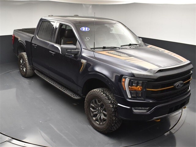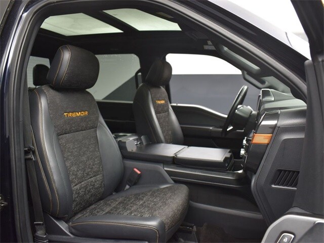 CARFAX One-Owner. JACKSON CERTIFIED PRE-OWNED, ONE OWNER, GREAT SERVICE RECORDS, PREMIUM PACKAGE 2, NAVIGATION, BLIND SPOT ASSIST, LANE TRACKING, REARVIEW CAMERA, PANORAMA SUNROOF, SMARTPHONE INTEGRATED NAVIGATION, LIGHTING PACKAGE, PREMIUM LEATHER, DRIVERS ASSISTANCE PACKAGE, WARMTH AND COMFORT PACKAGE, PARKING ASSISTANCE PACKAGE, APPLE AIR PLAY, INDUCTIVE WIRELESS CHARGING, HEATED SEATS, 20 INCH PLUS OFF ROAD WHEELS AND TIRES, 4WD, 2nd Row Heated Seats, 360 Degree Camera, 4-Wheel Disc Brakes, 8" Productivity Screen in Instrument Cluster, ABS brakes, Active Park Assist 2.0, Air Conditioning, Alloy wheels, Auto High Beam, Auto High-beam Headlights, Auto-Dimming Rear-View Mirror, BLIS w/Cross Traffic Alert, BlueCruise, Body-Color Door Handles w/Body-Color Bezel, Brake assist, Bumpers: body-color, Carpeted Floor Mats w/Tremor Logo, Class IV Trailer Hitch Receiver, Compass, Connected Built-In Navigation, Delay-off headlights, Driver door bin, Dual front impact airbags, Dual front side impact airbags, Dual Zone Automatic Temperature Control, Electronic Locking w/3.73 Axle Ratio, Electronic Stability Control, Emergency communication system: SYNC 4 911 Assist, Equipment Group 401A Mid, Evasive Steering Assist, Extended Range 36 Gallon Fuel Tank, Exterior Parking Camera Rear, First Aid Kit w/Ford Logo, Ford Co-Pilot360 2.0, Ford Co-Pilot360 Active 2.0 Package, Ford Co-Pilot360 Assist 2.0, Front & Rear Molded Splash Guards, Front anti-roll bar, Front Bucket Seats, Front Center Armrest, Front fog lights, Front License Plate Bracket, Front reading lights, Front wheel independent suspension, Fully automatic headlights, Heated door mirrors, Heated Front Seats, Heated Steering Wheel, Illuminated entry, Integrated Trailer Brake Controller, Intelligent Access w/Push Button Start, Intelligent Adaptive Cruise Control w/Stop & Go, Interior Work Surface, Intersection Assist, Lane-Keeping System, Leather-Wrapped Steering Wheel, LED Box Lighting w/Zone Lighting, LED Reflector Headlamps, LED Sideview Mirror Spotlights, Low tire pressure warning, Navigation System, Occupant sensing airbag, Onboard 400W Outlet, Outside temperature display, Overhead airbag, Overhead console, Panic alarm, Passenger door bin, Passenger vanity mirror, Post-Collision Braking, Power door mirrors, Power Glass Heated Sideview Mirrors, Power steering, Power Tilt/Telescoping Steering Column w/Memory, Power windows, Power-Sliding Rear Window, Pre-Collision Assist w/Automatic Emergency Braking, Pro Power Onboard - 2KW, Pro Trailer Backup Assist, Radio data system, Radio: B&O Sound System by Bang & Olufsen, Rain-Sensing Wipers, Rear step bumper, Rear Under-Seat Storage, Rear window defroster, Rear-View Camera, Remote keyless entry, Remote Start System w/Remote Tailgate Release, Reverse Brake Assist, Reverse Sensing System, SecuriCode Drivers Side Keyless-Entry Keypad, Security system, Speed Sign Recognition, Speed-sensing steering, Split folding rear seat, Steering wheel mounted audio controls, SYNC 4 w/Enhanced Voice Recognition, Tachometer, Telescoping steering wheel, Tilt steering wheel, Tough Bed Spray-In Bedliner, Tow Technology Package, Traction control, Trail Control, Trailer Tow Package, Trip computer, Twin Panel Moonroof, Unique Sport Cloth 40/Console/40 Power Front Seat, Universal Garage Door Opener, Variably intermittent wipers, Voltmeter, Wheels: 18" Alloy w/Dark Matte Finish. Jackson Advatange includes Lifetime Carwashes, Lifetime Loaner vehicle, Anti-Theft Window Etch, Blue 2021 Ford F-150 Tremor 4WD 10-Speed Automatic 3.5L V6 EcoBoost