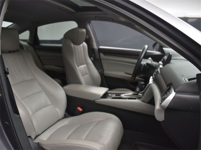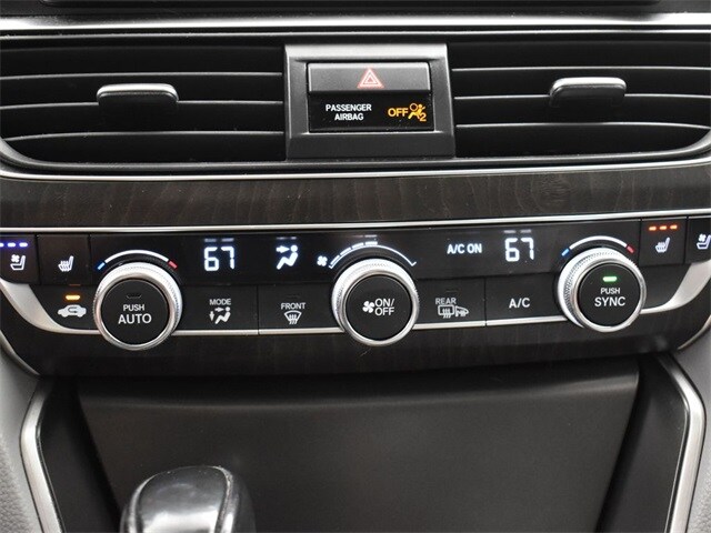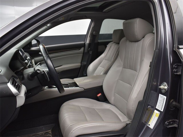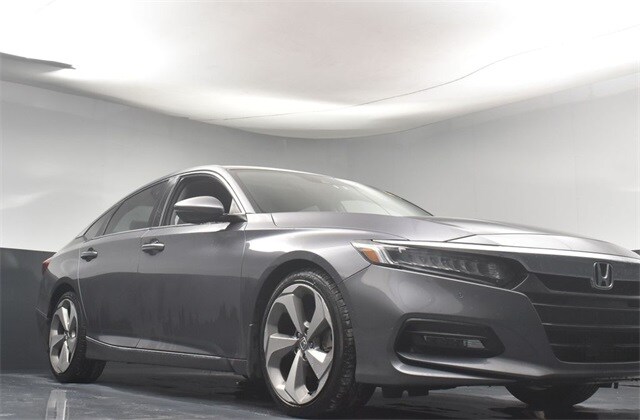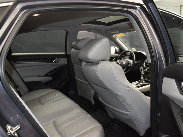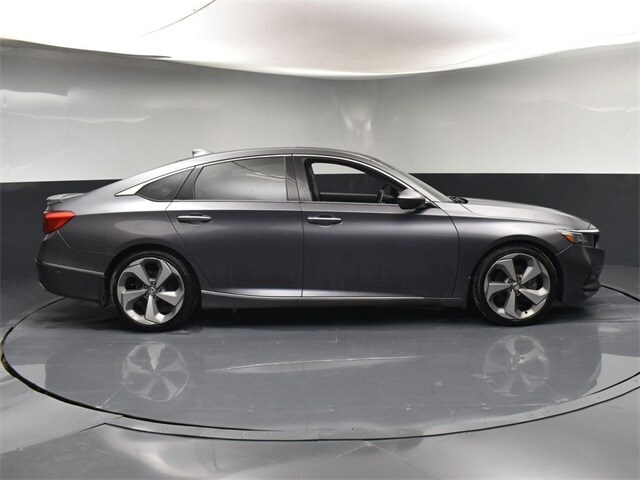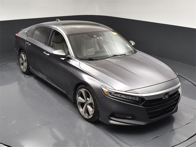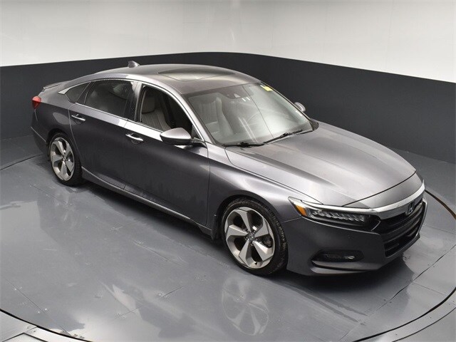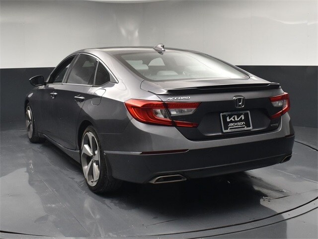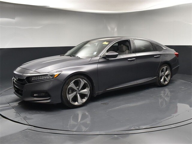 Clean CARFAX. CLEAN CARFAX HISTORY, LOCAL TRADE IN, GREAT SERVICE RECORDS, PREMIUM PACKAGE 2, BLIND SPOT ASSIST, MOONROOF, PREMIUM LEATHER, Black Leather, 10 Speakers, 4-Wheel Disc Brakes, ABS brakes, Adaptive suspension, Air Conditioning, Alloy wheels, AM/FM radio: SiriusXM, Apple CarPlay/Android Auto, Auto High-beam Headlights, Auto-dimming Rear-View mirror, Automatic temperature control, Blind Spot Information (BSI) System warning, Brake assist, Bumpers: body-color, Compass, Delay-off headlights, Driver door bin, Driver vanity mirror, Dual front impact airbags, Dual front side impact airbags, Electronic Stability Control, Emergency communication system: HondaLink, Exterior Parking Camera Rear, Four wheel independent suspension, Front anti-roll bar, Front Bucket Seats, Front Center Armrest, Front dual zone A/C, Front fog lights, Front reading lights, Fully automatic headlights, Garage door transmitter: HomeLink, Heads-Up Display, Heated & Ventilated Front Bucket Seats, Heated door mirrors, Heated front seats, Heated rear seats, Illuminated entry, Knee airbag, Leather Shift Knob, Leather steering wheel, Leather-Trimmed Seats, Low tire pressure warning, Memory seat, Navigation System, Occupant sensing airbag, Outside temperature display, Overhead airbag, Overhead console, Panic alarm, Passenger door bin, Passenger vanity mirror, Power door mirrors, Power driver seat, Power moonroof, Power passenger seat, Power steering, Power windows, Radio data system, Radio: 450-Watt AM/FM/HD Premium Audio System, Rain sensing wipers, Rear anti-roll bar, Rear seat center armrest, Rear window defroster, Remote keyless entry, Security system, Speed control, Speed-sensing steering, Speed-Sensitive Wipers, Split folding rear seat, Steering wheel mounted audio controls, Tachometer, Telescoping steering wheel, Tilt steering wheel, Traction control, Trip computer, Turn signal indicator mirrors, Variably intermittent wipers, Ventilated front seats, Wheels: 19" Machine-Finished Alloy w/Gray Inserts. Jackson Advatange includes Lifetime Carwashes, Lifetime Loaner vehicle, Anti-Theft Window Etch, Modern Steel Metallic 2018 Honda Accord Touring FWD CVT 1.5T I4 DOHC 16V Turbocharged VTEC