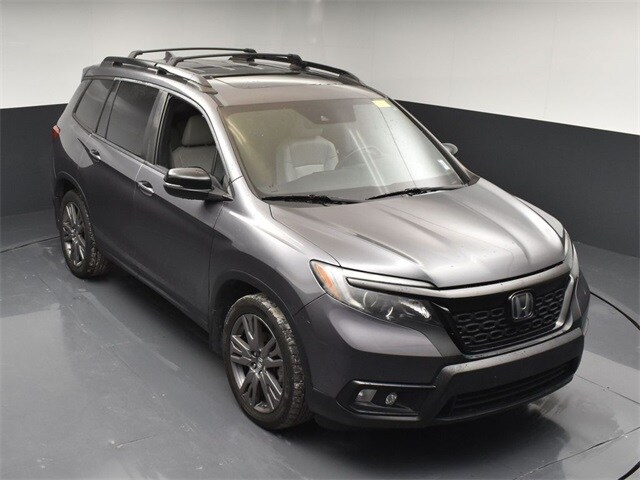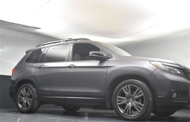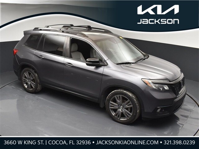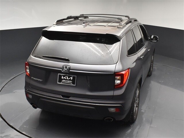 Clean CARFAX. CLEAN CARFAX HISTORY, LOCAL TRADE IN, GREAT SERVICE RECORDS, PREMIUM PACKAGE 2, REARVIEW CAMERA, 4-Wheel Disc Brakes, 4.334 Axle Ratio, 7 Speakers, A/V remote: CabinControl, ABS brakes, Air Conditioning, Alloy wheels, AM/FM radio: SiriusXM, Apple CarPlay/Android Auto, Auto High-beam Headlights, Auto-dimming Rear-View mirror, Automatic temperature control, Blind Spot Information (BSI) System warning, Brake assist, Bumpers: body-color, Delay-off headlights, Driver door bin, Driver vanity mirror, Driver's Seat Mounted Armrest, Dual front impact airbags, Dual front side impact airbags, Electronic Stability Control, Emergency communication system: HondaLink Assist, Exterior Parking Camera Rear, Forward collision: Collision Mitigation Braking System (CMBS) + FCW mitigation, Four wheel independent suspension, Front anti-roll bar, Front Bucket Seats, Front Center Armrest, Front dual zone A/C, Front fog lights, Front reading lights, Fully automatic headlights, Garage door transmitter: HomeLink, Heated door mirrors, Heated Expanded View Mirror, Heated Front Bucket Seats, Heated front seats, Illuminated entry, Lane departure: Lane Keeping Assist System (LKAS) active, Leather-Trimmed Seats, Low tire pressure warning, Memory seat, Occupant sensing airbag, Outside temperature display, Overhead airbag, Overhead console, Panic alarm, Passenger door bin, Passenger seat mounted armrest, Passenger vanity mirror, Power door mirrors, Power driver seat, Power Liftgate, Power moonroof, Power passenger seat, Power steering, Power windows, Radio data system, Radio: 215-Watt Audio System w/7 Speakers, Rear air conditioning, Rear anti-roll bar, Rear reading lights, Rear seat center armrest, Rear window defroster, Rear window wiper, Remote keyless entry, Security system, Speed control, Speed-sensing steering, Splash Guard Set, Split folding rear seat, Spoiler, Steering wheel mounted audio controls, Tachometer, Telescoping steering wheel, Tilt steering wheel, Traction control, Trip computer, Turn signal indicator mirrors, Variably intermittent wipers, Wheels: 20" Split-Spoke Pewter Gray Alloy. Jackson Advatange includes Lifetime Carwashes, Lifetime Loaner vehicle, Anti-Theft Window Etch, Modern Steel Metallic 2020 Honda Passport EX-L FWD 9-Speed Automatic 3.5L V6 24V SOHC i-VTEC