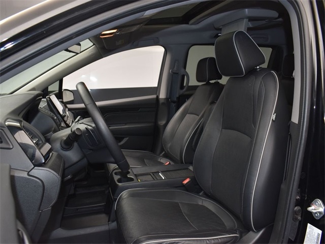 CARFAX One-Owner. ONE OWNER, LOCAL TRADE IN, GREAT SERVICE RECORDS, PREMIUM PACKAGE 2, PREMIUM PACKAGE 3, NAVIGATION, BLIND SPOT ASSIST, LANE TRACKING, REARVIEW CAMERA, PANORAMA SUNROOF, PREMIUM LEATHER, 3RD ROW SEATING, APPLE AIR PLAY, HEATED SEATS, 11 Speakers, 3.61 Axle Ratio, 3rd row seats: split-bench, 4-Wheel Disc Brakes, A/V remote: CabinControl, ABS brakes, Adaptive Cruise Control: Adaptive Cruise Control (ACC) with Low-Speed Follow, Air Conditioning, All Season Floor Mats, Alloy wheels, AM/FM radio: SiriusXM, Anti-whiplash front head restraints, Apple CarPlay/Android Auto, Auto High-beam Headlights, Auto-dimming door mirrors, Auto-dimming Rear-View mirror, Automatic temperature control, Blind Spot Information (BSI) System warning, Brake assist, Bumpers: body-color, CD player, Compass, Delay-off headlights, Driver door bin, Driver vanity mirror, Driver's Seat Mounted Armrest, Dual front impact airbags, Dual front side impact airbags, DVD-Audio, Electronic Stability Control, Emergency communication system: HondaLink, Exterior Parking Camera Rear, Four wheel independent suspension, Front anti-roll bar, Front Bucket Seats, Front dual zone A/C, Front fog lights, Front reading lights, Fully automatic headlights, Garage door transmitter: HomeLink, Headphones, Heated door mirrors, Heated Front Bucket Seats, Heated front seats, Heated steering wheel, Illuminated entry, Knee airbag, Lane departure: Lane Keeping Assist System (LKAS) active, Leather Seat Trim, Leather steering wheel, Low tire pressure warning, Memory seat, Navigation system: Honda Satellite-Linked Navigation System, Occupant sensing airbag, Outside temperature display, Overhead airbag, Overhead console, Panic alarm, Passenger door bin, Passenger seat mounted armrest, Passenger vanity mirror, Power door mirrors, Power driver seat, Power Liftgate, Power moonroof, Power passenger seat, Power steering, Power windows, Radio data system, Radio: 550-Watt AM/FM/HD Premium Audio System, Rain sensing wipers, Rear air conditioning, Rear anti-roll bar, Rear audio controls, Rear reading lights, Rear seat center armrest, Rear window defroster, Rear window wiper, Reclining 3rd row seat, Remote keyless entry, Security system, Speed control, Speed-sensing steering, Speed-Sensitive Wipers, Split folding rear seat, Spoiler, Steering wheel mounted audio controls, Tachometer, Telescoping steering wheel, Tilt steering wheel, Traction control, Trip computer, Turn signal indicator mirrors, Variably intermittent wipers, Wheel Locks, Wheels: 19" Unique Machine-Finished Alloy. Jackson Advatange includes Lifetime Carwashes, Lifetime Loaner vehicle, Anti-Theft Window Etch, Crystal Black Pearl 2023 Honda Odyssey Elite FWD 10-Speed Automatic 3.5L V6 SOHC i-VTEC 24V