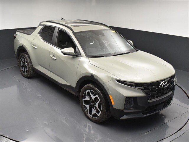 CARFAX One-Owner. Clean CARFAX. CLEAN CARFAX HISTORY, ONE OWNER, LOCAL TRADE IN, APPLE AIR PLAY, 3.316 Axle Ratio, 4-Wheel Disc Brakes, 8 Speakers, ABS brakes, Air Conditioning, Alloy wheels, AM/FM radio: SiriusXM, Apple CarPlay & Android Auto, Auto High-beam Headlights, Auto-dimming Rear-View mirror, Auto-leveling suspension, Automatic temperature control, Brake assist, Bumpers: body-color, Carpeted Floor Mats, Delay-off headlights, Driver door bin, Driver vanity mirror, Dual front impact airbags, Dual front side impact airbags, Electronic Stability Control, Emergency communication system: Blue Link Connected Car Service (3-year complimentary subscription), Exterior Parking Camera Rear, First Aid Kit, Fitted Liners, Four wheel independent suspension, Front anti-roll bar, Front Bucket Seats, Front Center Armrest, Front dual zone A/C, Front reading lights, Fully automatic headlights, Garage door transmitter: HomeLink, Heated & Ventilated Front Bucket Seats, Heated door mirrors, Heated front seats, Heated steering wheel, Illuminated entry, Leather Seat Trim, Leather Shift Knob, Low tire pressure warning, Mudguards, Navigation System, Occupant sensing airbag, Option Group 01, Outside temperature display, Overhead airbag, Overhead console, Panic alarm, Passenger door bin, Passenger vanity mirror, Power door mirrors, Power driver seat, Power moonroof, Power steering, Power windows, Radio data system, Radio: AM/FM/HD Bose Premium Audio System, Rain sensing wipers, Rear anti-roll bar, Rear step bumper, Rear window defroster, Remote keyless entry, Security system, Speed control, Speed-sensing steering, Split folding rear seat, Spoiler, Steering wheel mounted audio controls, Tachometer, Telescoping steering wheel, Tilt steering wheel, Traction control, Trip computer, Turn signal indicator mirrors, Variably intermittent wipers, Ventilated front seats, Wheel Locks, Wheels: 20" x 7.5J Alloy. Jackson Advatange includes Lifetime Carwashes, Lifetime Loaner vehicle, Anti-Theft Window Etch, Sage Gray 2023 Hyundai Santa Cruz Limited AWD Shiftronic 2.5L I4