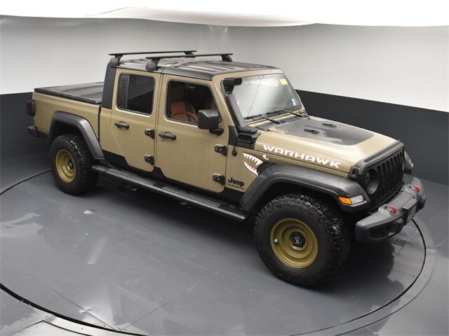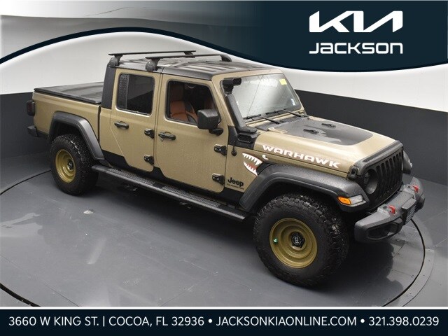 LOCAL TRADE IN, GREAT SERVICE RECORDS, PREMIUM PACKAGE, PREMIUM LEATHER, APPLE AIR PLAY, HEATED SEATS, 1-Year SiriusXM Radio Service, 110 mph Vehicle Max Speed Calibration, 3.73 Rear Axle Ratio, 4-Wheel Disc Brakes, 7.0" Touch Screen Display, 8 Speakers, ABS brakes, Air Conditioning, Air Conditioning w/Auto Temperature Control, AM/FM radio, Anti-Lock 4-Wheel Disc Heavy Duty Brakes, Apple CarPlay, Brake assist, Cloth Low-Back Bucket Seats, Cluster 7.0" TFT Color Display, Compass, Delay-off headlights, Driver vanity mirror, Dual front impact airbags, Dual front side impact airbags, Dual Top Group, Electronic Stability Control, For More Info, Call 800-643-2112, Front anti-roll bar, Front Bucket Seats, Front Center Armrest w/Storage, Front fog lights, Front reading lights, Google Android Auto, GPS Antenna Input, Integrated Center Stack Radio, Integrated roll-over protection, Low tire pressure warning, Normal Duty Suspension, Occupant sensing airbag, Outside temperature display, ParkView Rear Back-Up Camera, Passenger door bin, Passenger vanity mirror, Power steering, Premium Sunrider Black Soft Top, Radio: Uconnect 4 w/7" Display, Rear anti-roll bar, Rear reading lights, Remote Keyless Entry, SiriusXM Satellite Radio, Speed control, Split folding rear seat, Steering wheel mounted audio controls, Tachometer, Technology Group, Telescoping steering wheel, Tilt steering wheel, Traction control, Trip computer, USB Host Flip, Variably intermittent wipers, Wheels: 18" x 7.5" Granite Crystal Aluminum. Jackson Advatange includes Lifetime Carwashes, Lifetime Loaner vehicle, Anti-Theft Window Etch, Gator Clearcoat 2020 Jeep Gladiator Warhawk 4WD 8-Speed Automatic 3.6L V6 24V VVT