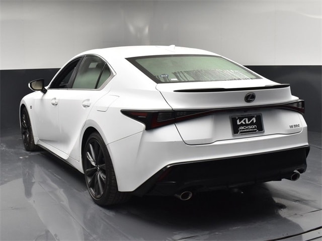 CARFAX One-Owner. Clean CARFAX. CLEAN CARFAX HISTORY, ONE OWNER, PREMIUM PACKAGE 2, NAVIGATION, BLIND SPOT ASSIST, LANE TRACKING, REARVIEW CAMERA, PREMIUM LEATHER, APPLE AIR PLAY, Black Artificial Leather, 10 Speakers, 19" Wheels, 4-Wheel Disc Brakes, ABS brakes, Accessory Package 2, Active Cruise Control, Adaptive Variable Suspension, Air Conditioning, Alloy wheels, AM/FM radio: SiriusXM, Apple CarPlay/Android Auto, Ash Interior Trim, Auto High-beam Headlights, Auto-dimming door mirrors, Auto-dimming Rear-View mirror, Automatic temperature control, Brake assist, Bumpers: body-color, Carbon Fiber Rear Spoiler, Cargo Net, Carpet Trunk Mat, CD player, Compass, Delay-off headlights, Drive Mode Select, Driver door bin, Driver vanity mirror, Dual front impact airbags, Dual front side impact airbags, Electronic Stability Control, Emergency communication system: Safety Connect (3-year trial), Exterior Parking Camera Rear, F SPORT Heated Ash Wood-Trim Steering Wheel, Four wheel independent suspension, Front anti-roll bar, Front Bucket Seats, Front Center Armrest, Front dual zone A/C, Front fog lights, Front reading lights, Fully automatic headlights, Garage door transmitter: HomeLink, Handling Package, Heated & Ventilated F SPORT Seats, Heated door mirrors, Heated front seats, Heated steering wheel, Illuminated entry, Key Gloves, Knee airbag, Leather Shift Knob, Lexus Memory System for Driver's Seat, Low tire pressure warning, Memory Package, Moonroof, Navigation System, Occupant sensing airbag, Outside Mirrors w/Auto Tilt-Down in Reverse, Outside temperature display, Overhead airbag, Overhead console, Panic alarm, Passenger door bin, Passenger vanity mirror, Perforated NuLuxe Seat Trim, Power door mirrors, Power driver seat, Power passenger seat, Power steering, Power Tilt & Telescoping Steering Wheel, Power windows, Radio data system, Radio: Multimedia System w/8" Color Touchscreen, Rain sensing wipers, Rear anti-roll bar, Rear Bumper Applique, Rear reading lights, Rear seat center armrest, Rear side impact airbag, Rear window defroster, Remote keyless entry, Security system, Smart Access Card Key, Speed control, Speed-sensing steering, Speed-Sensitive Wipers, Split folding rear seat, Spoiler, Sport steering wheel, Steering wheel mounted audio controls, Tachometer, Telescoping steering wheel, Tilt steering wheel, Torsen Limited Slip Differential (LSD), Traction control, Trip computer, Turn signal indicator mirrors, Variably intermittent wipers, Ventilated front seats. Jackson Advatange includes Lifetime Carwashes, Lifetime Loaner vehicle, Anti-Theft Window Etch, Ultra White 2023 Lexus IS 350 F SPORT RWD 8-Speed Automatic 3.5L V6 DOHC Dual VVT-i 24V