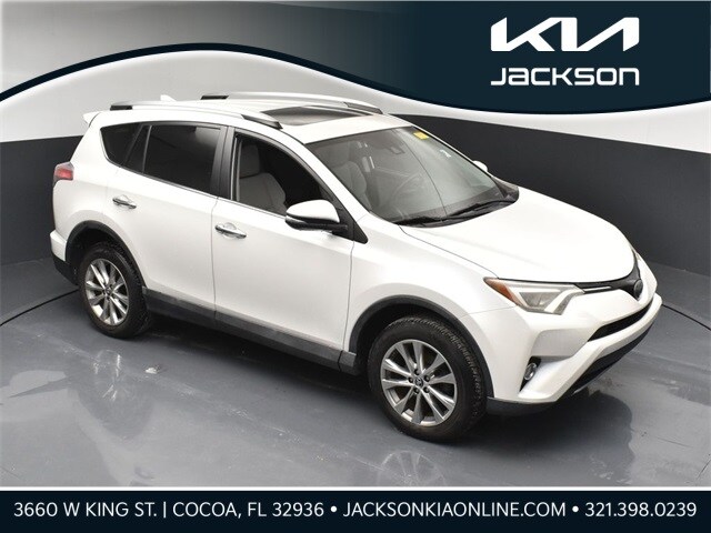 CARFAX One-Owner. Clean CARFAX. AWD, Ash Artificial Leather, 4-Wheel Disc Brakes, 4.071 Axle Ratio, 6 Speakers, ABS brakes, Air Conditioning, Alloy wheels, AM/FM radio: SiriusXM, Auto High-beam Headlights, Auto-dimming Rear-View mirror, Automatic temperature control, Brake assist, Bumpers: body-color, Chrome wheels, Compass, Driver door bin, Driver vanity mirror, Dual front impact airbags, Dual front side impact airbags, Electronic Stability Control, Exterior Parking Camera Rear, Four wheel independent suspension, Front anti-roll bar, Front Bucket Seats, Front Center Armrest, Front dual zone A/C, Front fog lights, Front reading lights, Fully automatic headlights, Garage door transmitter: HomeLink, Heated door mirrors, Heated front seats, Heated Front Sport Seats, Illuminated entry, Interior Light Kit, Knee airbag, Leather Shift Knob, Leather steering wheel, Low tire pressure warning, Memory seat, Mudguards, Navigation System, Occupant sensing airbag, Outside temperature display, Overhead airbag, Overhead console, Panic alarm, Passenger door bin, Passenger vanity mirror, Power door mirrors, Power driver seat, Power Liftgate, Power moonroof, Power steering, Power windows, Radio data system, Radio: Entune Premium Audio with Navigation, Radio: Prem Display Audio w/Nav/Entune/JBL, Rear anti-roll bar, Rear seat center armrest, Rear window defroster, Rear window wiper, Remote keyless entry, Roof rack, SofTex Seat Trim, Speed control, Speed-sensing steering, Split folding rear seat, Spoiler, Steering wheel mounted audio controls, Tachometer, Telescoping steering wheel, Tilt steering wheel, Traction control, Trip computer, Turn signal indicator mirrors, Variably intermittent wipers, Wheels: 18" Alloy ALM. Jackson Advatange includes Lifetime Carwashes, Lifetime Loaner vehicle, Anti-Theft Window Etch, Blizzard Pearl 2017 Toyota RAV4 Limited AWD 6-Speed Automatic 2.5L 4-Cylinder DOHC Dual VVT-i